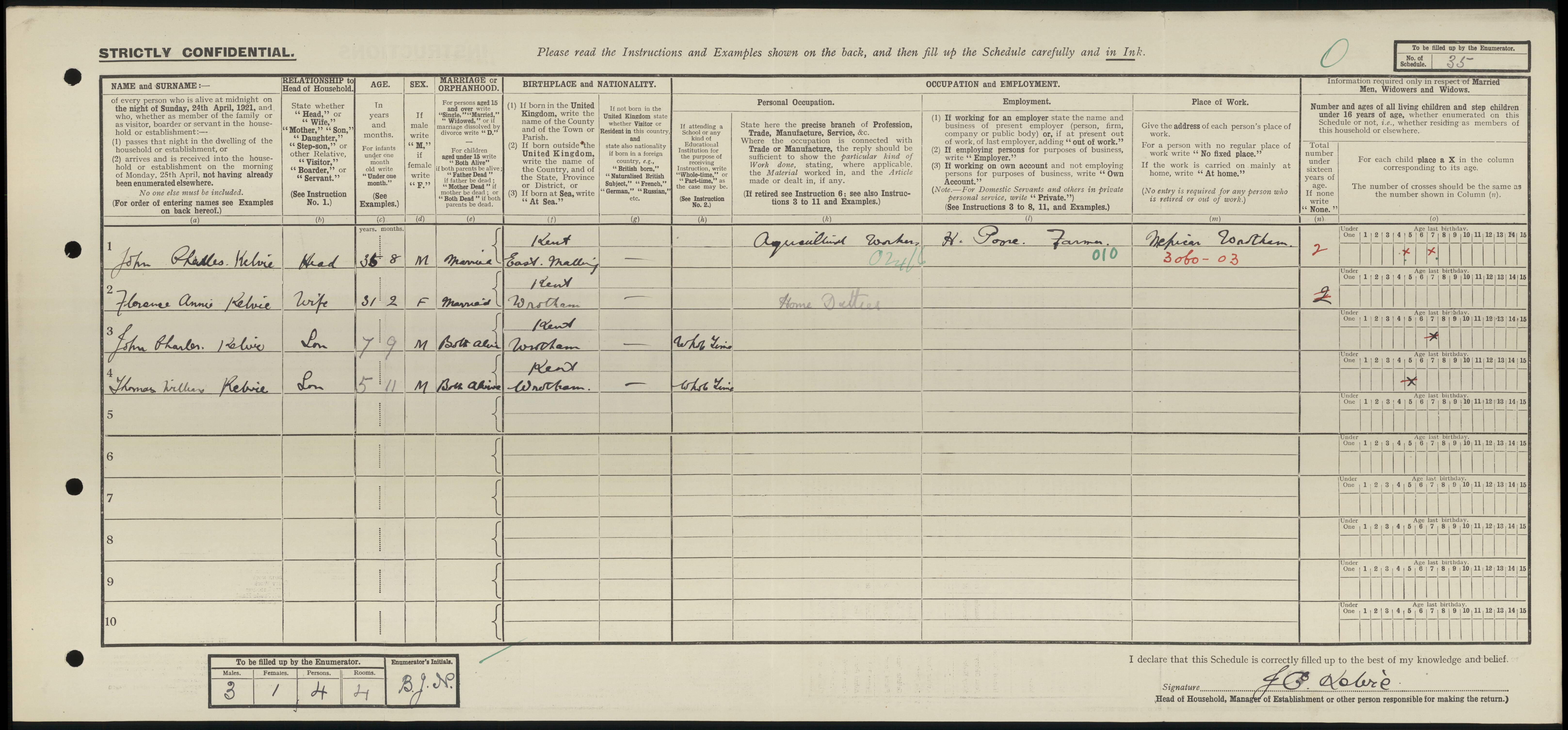 • Occupation: Agriculture Worker, 1921, Wrotham, Kent, England.