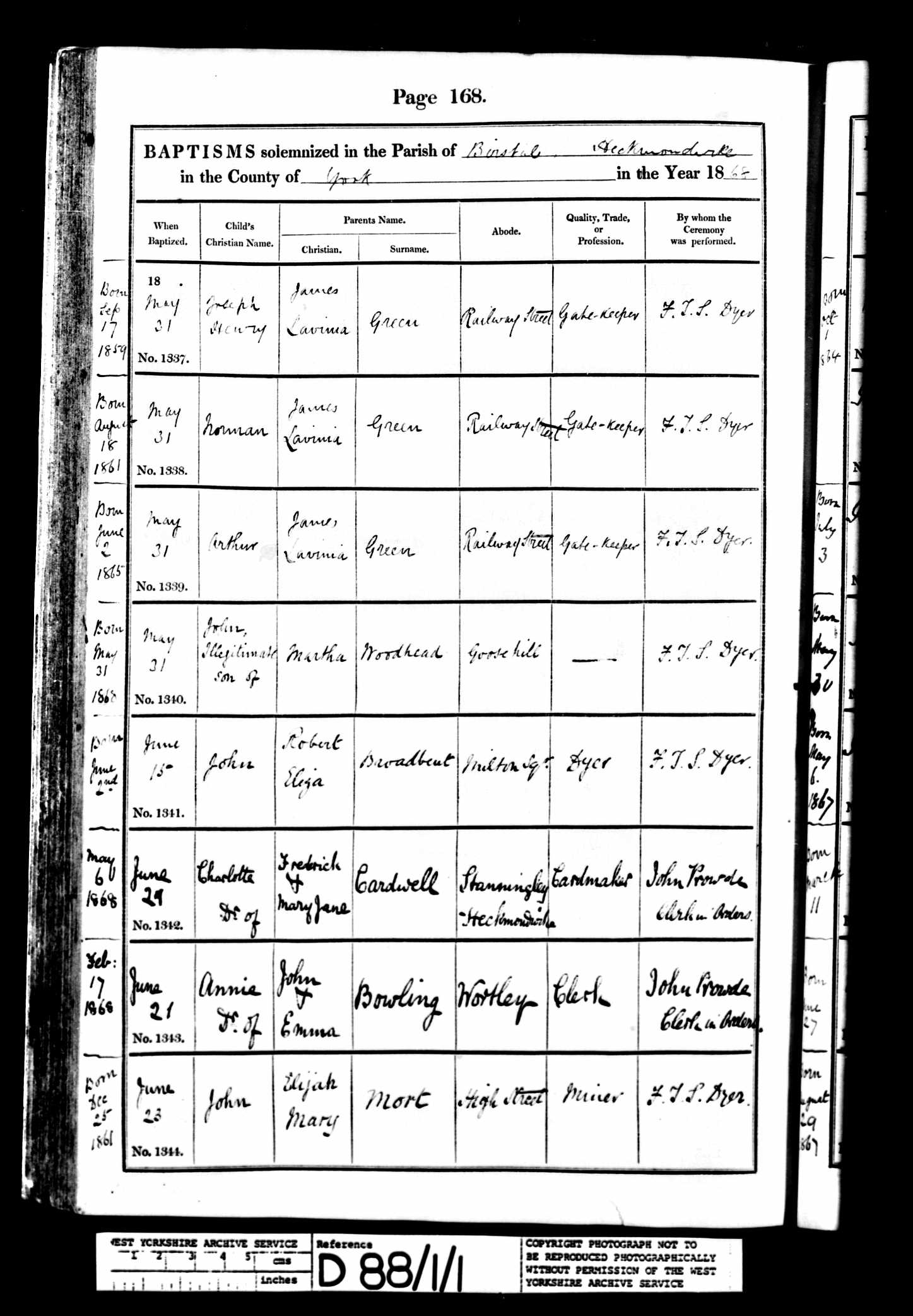 • Baptized: 21 Jun 1868, Heckmondwike, Yorkshire, England