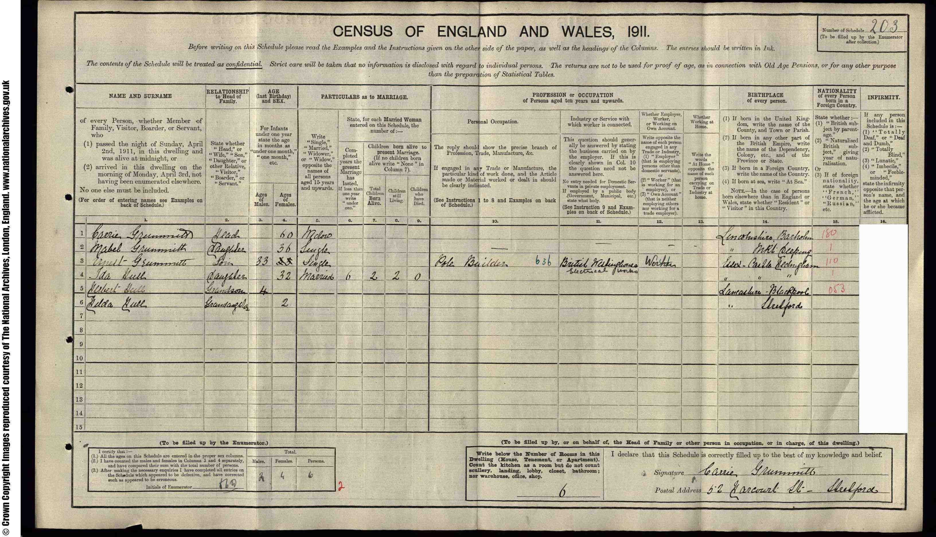 • Lived at: 52 Harcout Street, 1911, Shelford, Lancashire.