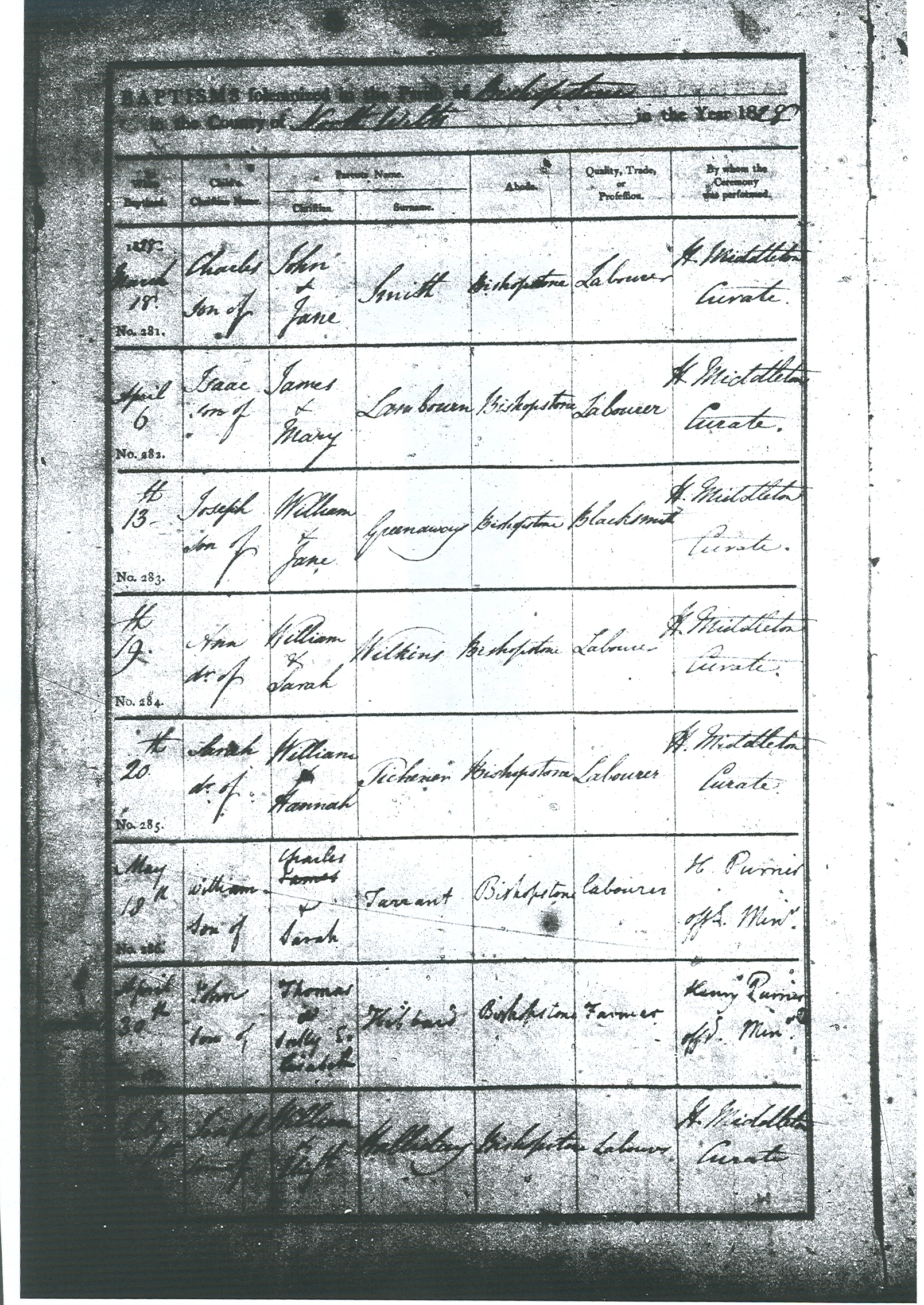 1 LDS, Bishopstone, North Wilts ID: PR BIS, Repository: Not Given, Call Number: ?. Surety: 3.