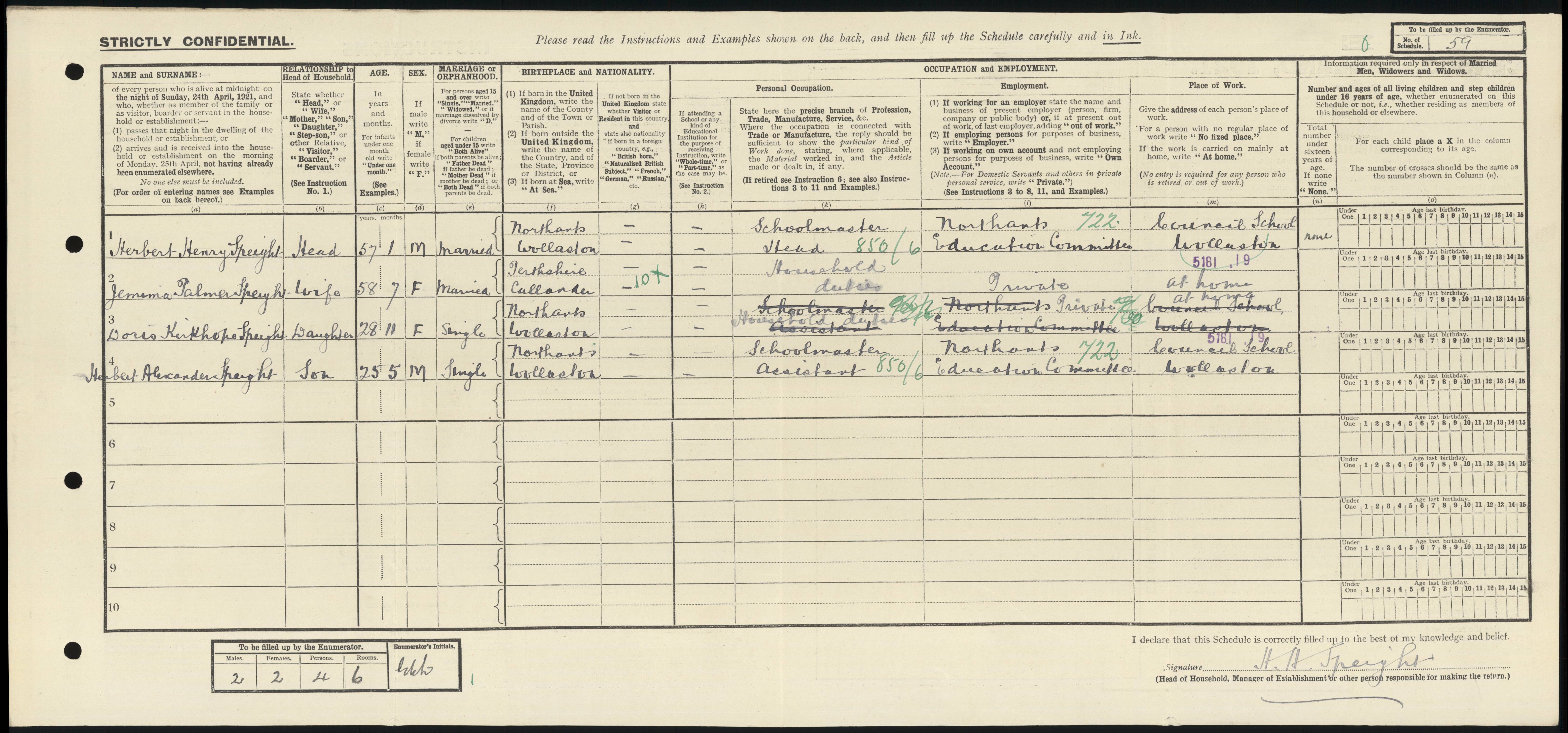 • Occupation: School Master - Head, 1921, Wollaston, Northamptonshire.