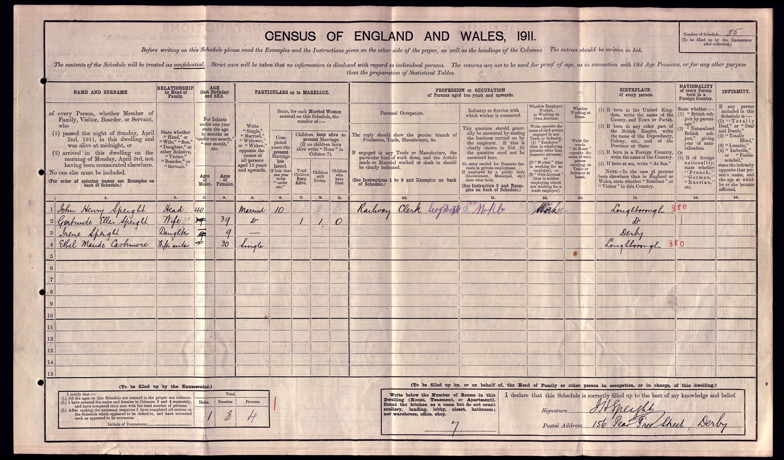 • Lived at: 156 Pear Tree Street, Derby, 1911.