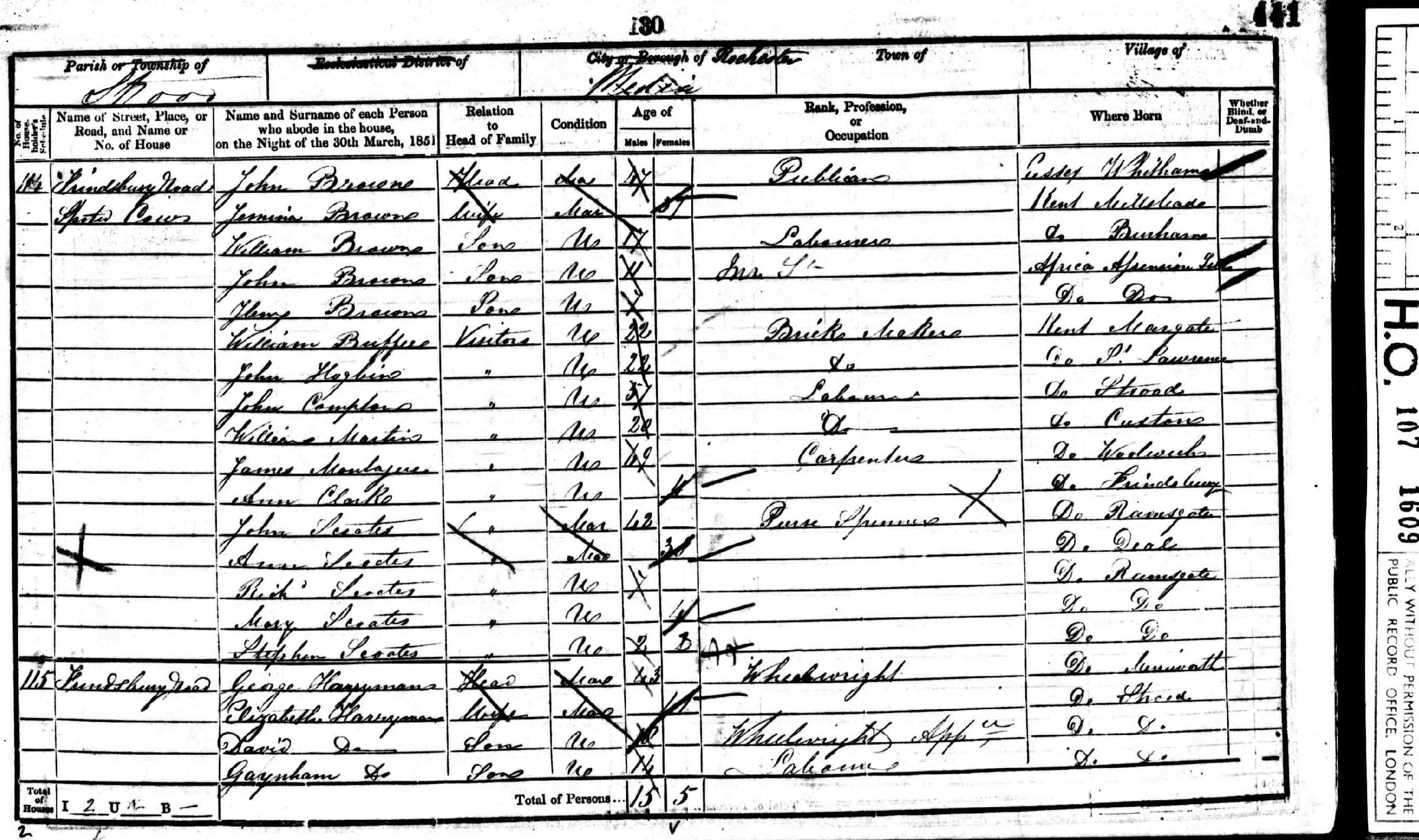 • Lived at: Frindsbury Road, 1851, Strood, Kent, England. 4 • Occupation: Wheelwright, 1851, Strood, Kent, England. 4