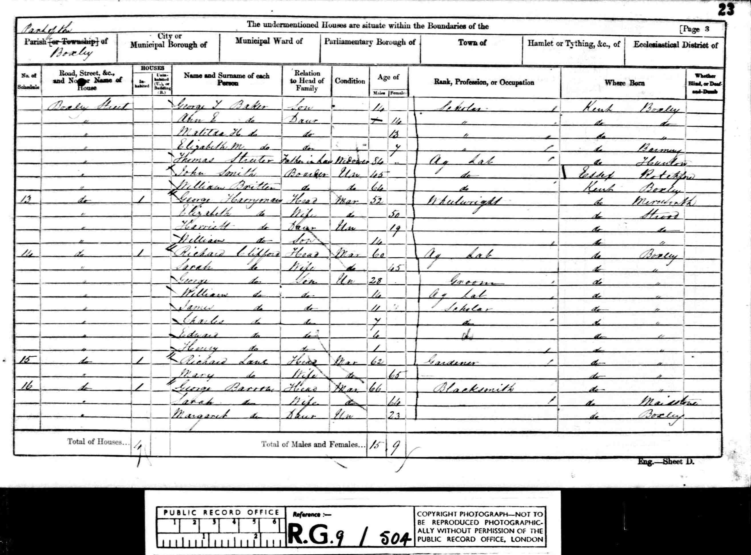 • Lived at: Boxley Street, 1861, Boxley, Kent, England. 1 • Occupation: Wheelwright, 1861, Boxley, Kent, England. 1