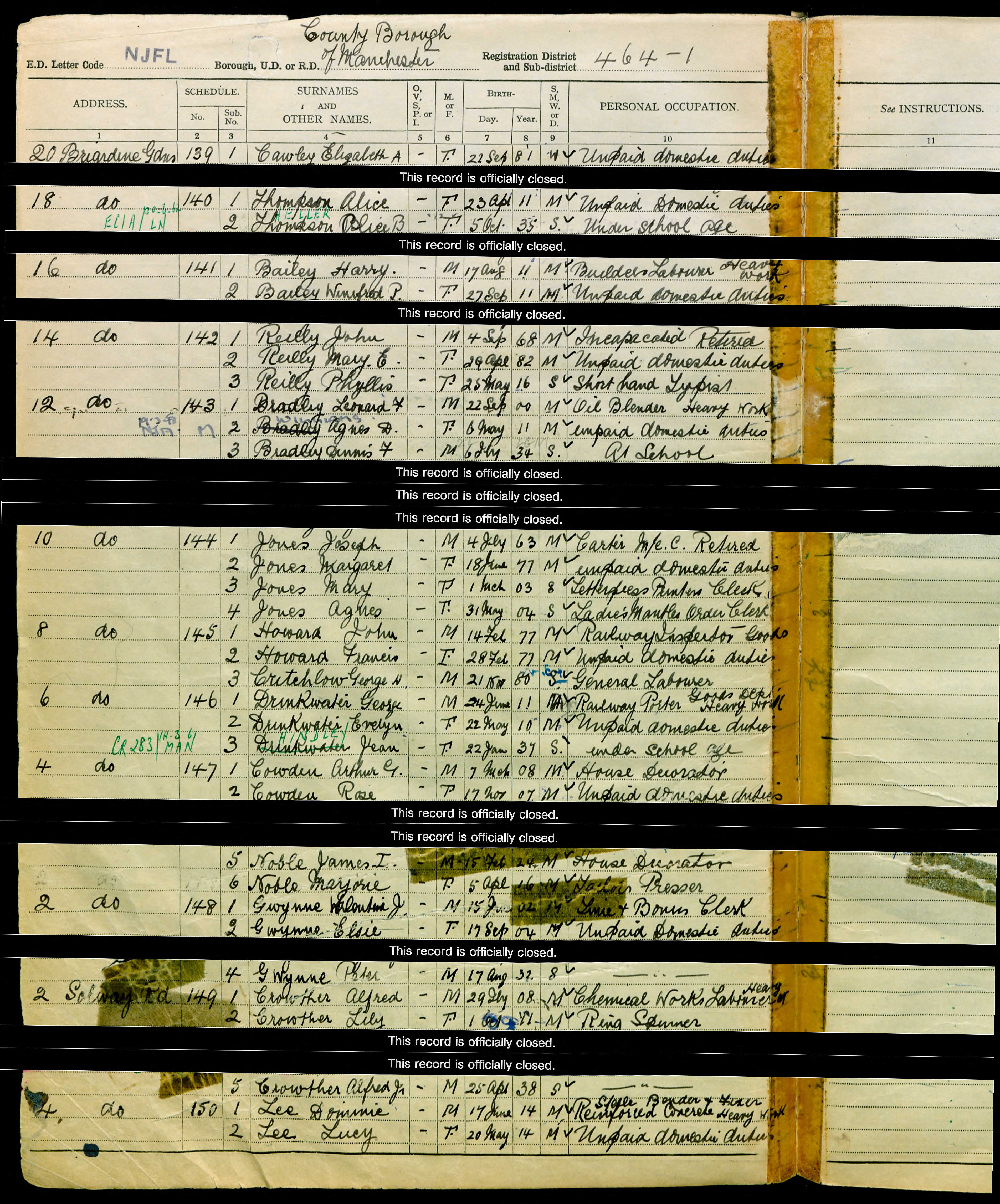 • Lived at: 12 Briardine Gdns, 1939, Manchester, Lancashire, England. Agnes married Leonard F. Bradley Jun Q 1933 in Southampton, Hampshire, England. (Leonard F. Bradley was born on 22 Sep 1900 and died Dec Q 1978 in Manchester, Lancashire, England.) Agnes next married Harold Williams Mar Q 1948 in Manchester S. |