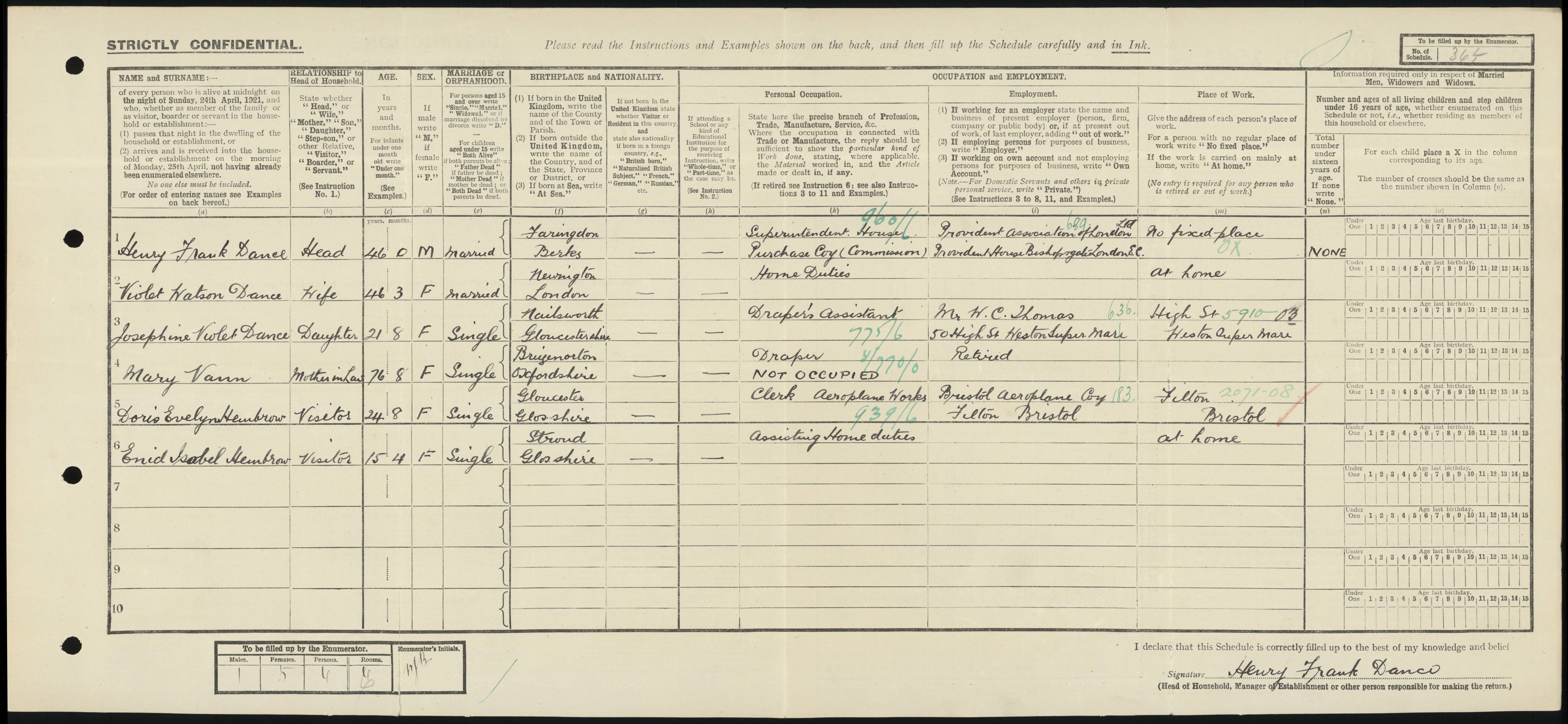• Occupation: Clerk, Aeroplane works, Filton, 1921, Bristol, Gloucestershire, England.