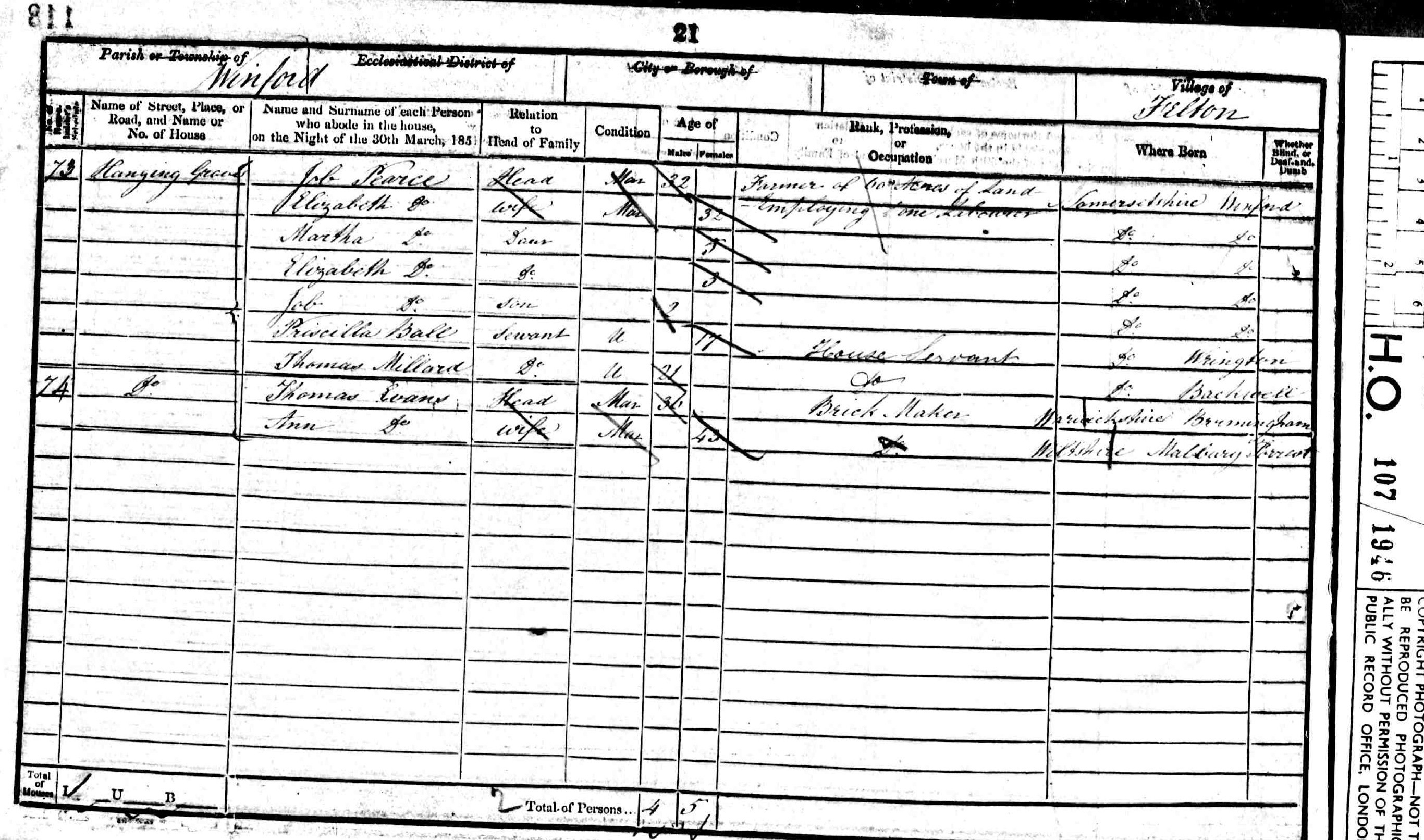 • Lived at: Broadfield, 1841, Wrington, Somerset, England. • Lived at: Hanging Great, 1851, Winford, Somerset, England. 1
