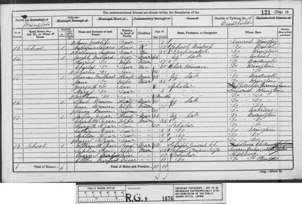 • Occupation: House Servant, 1851, Winford, Somerset, England. 1 • Lived at: School, 1861, Wrington, Somerset, England. 3