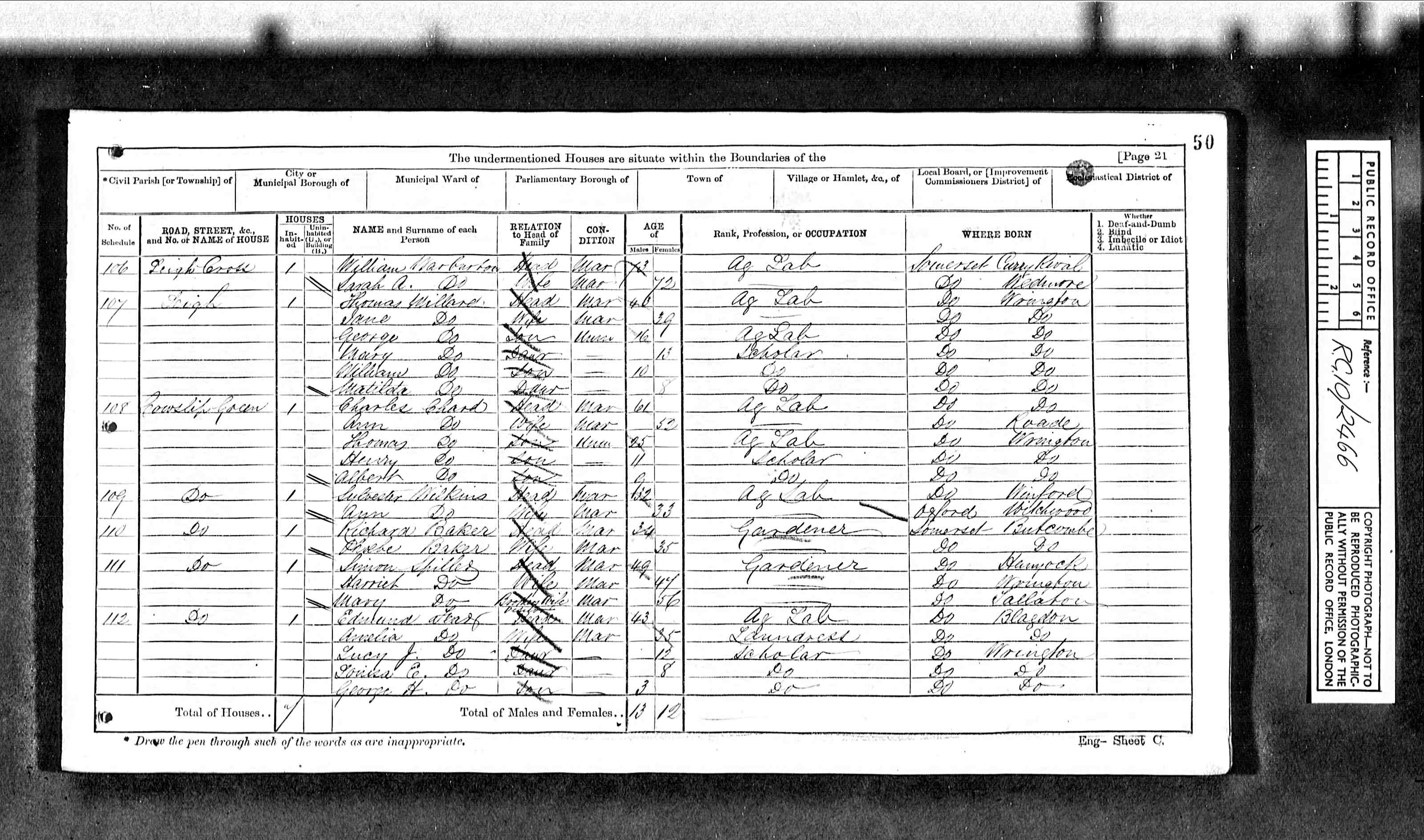 • Occupation: Ag. Lab, 1881, Wrington, Somerset, England. 5
