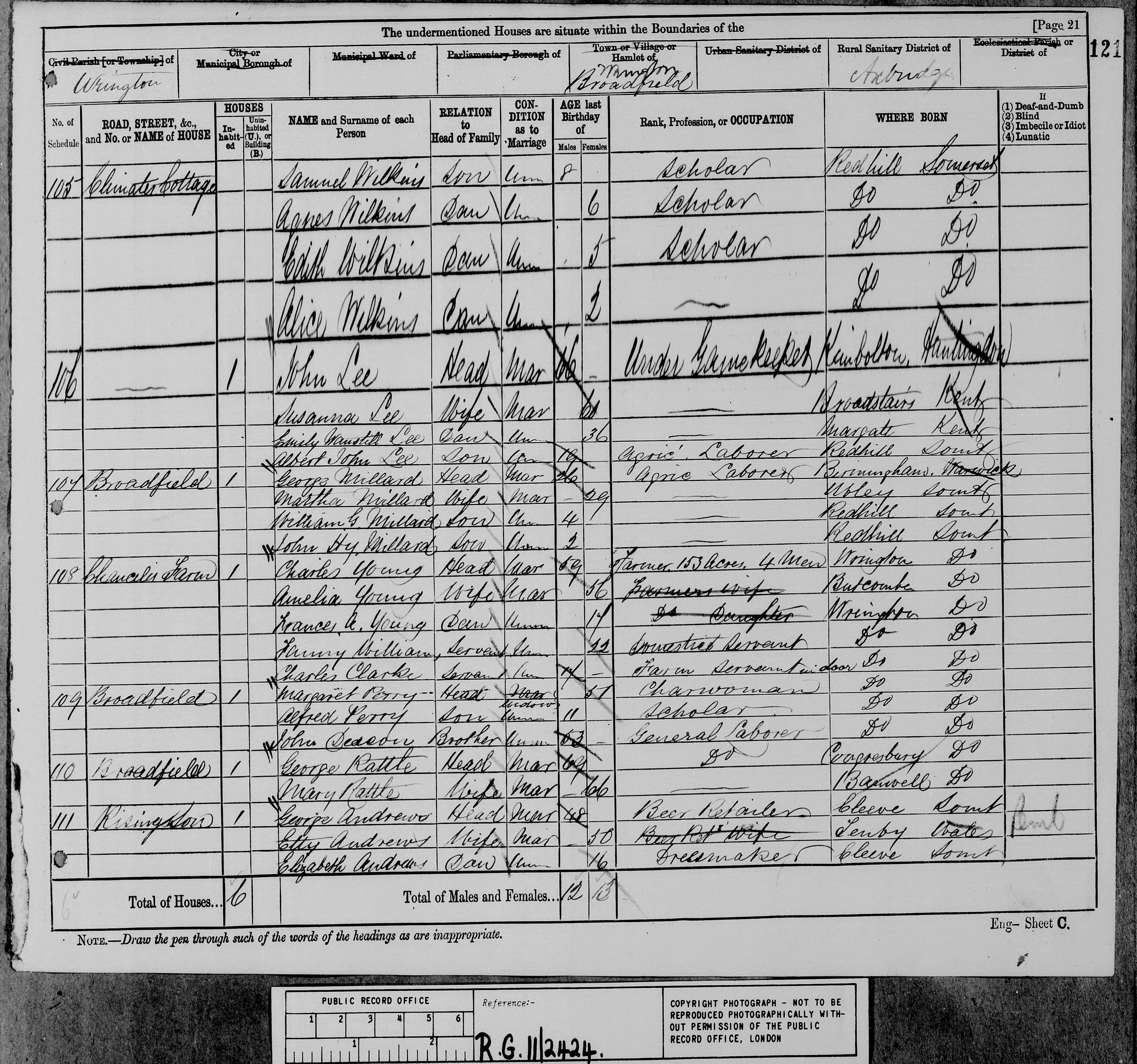 • Occupation: Ag Lab, 1881, Wrington, Somerset, England.