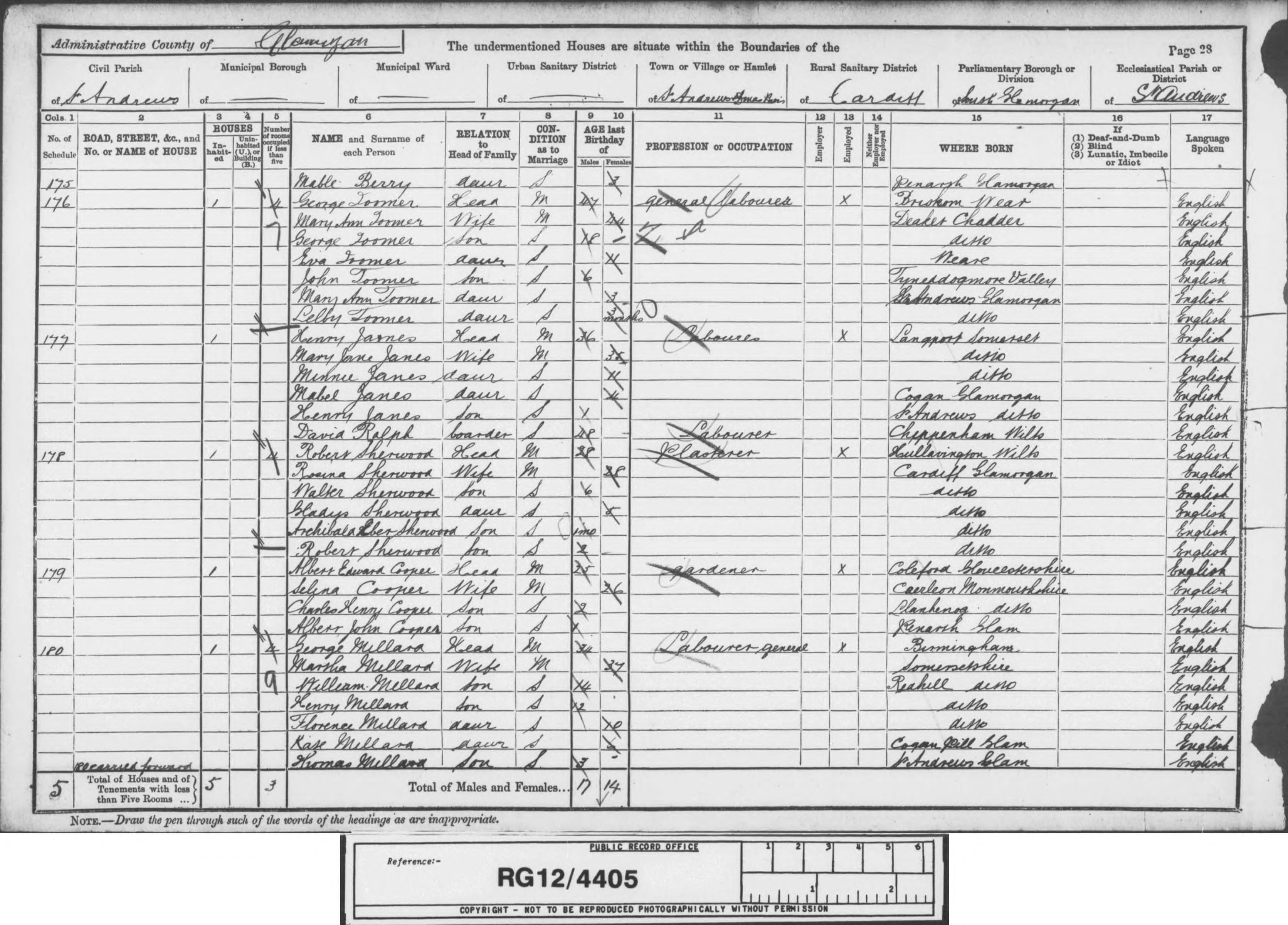 • Lived at: St. Andrews, 1891, Cardiff, Glamorgan, Wales. • Occupation: General Labourer, 1891, Cardiff, Glamorgan, Wales.