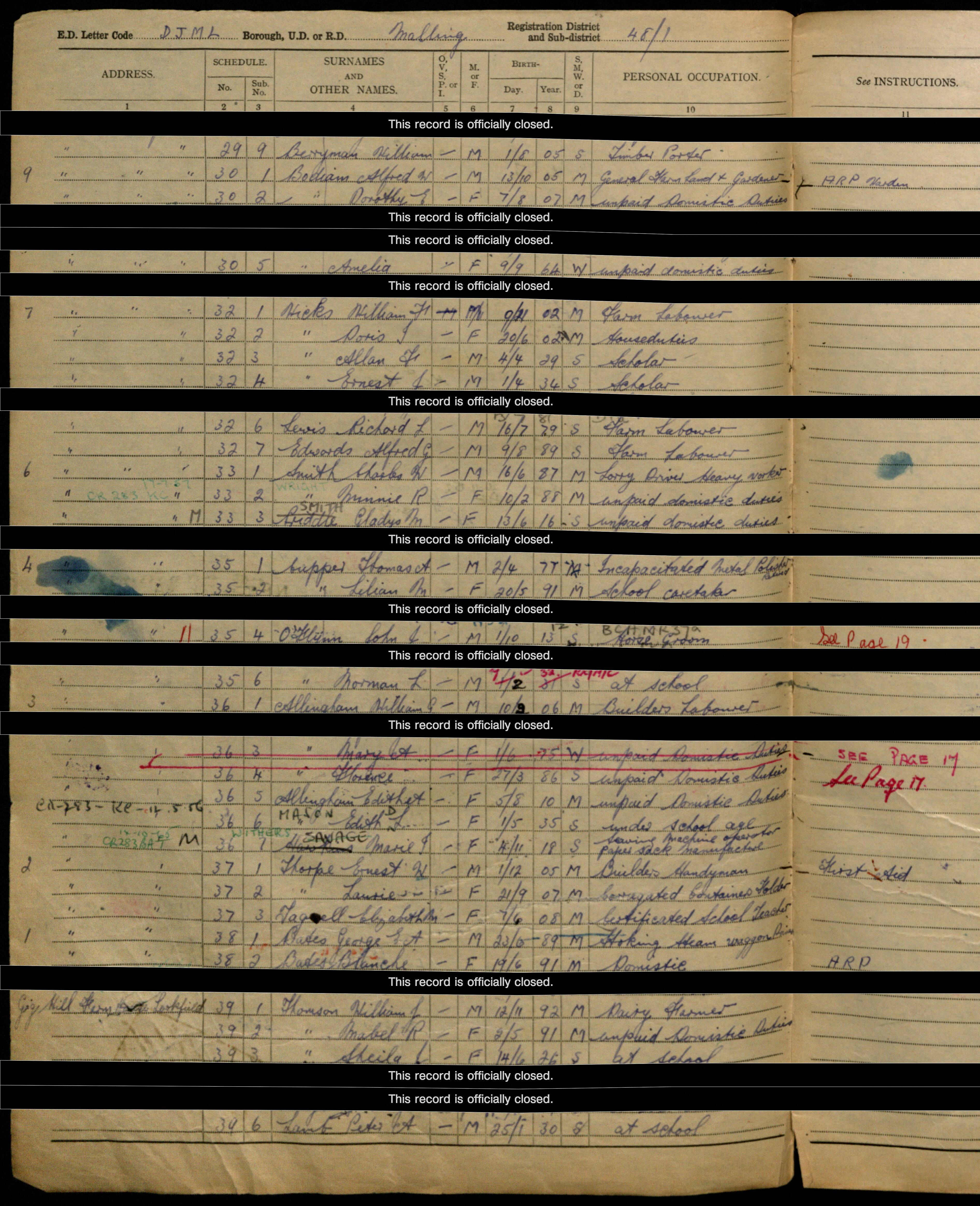 • Occupation: Builders Handyman, 1939, Malling R.D., Kent, England.