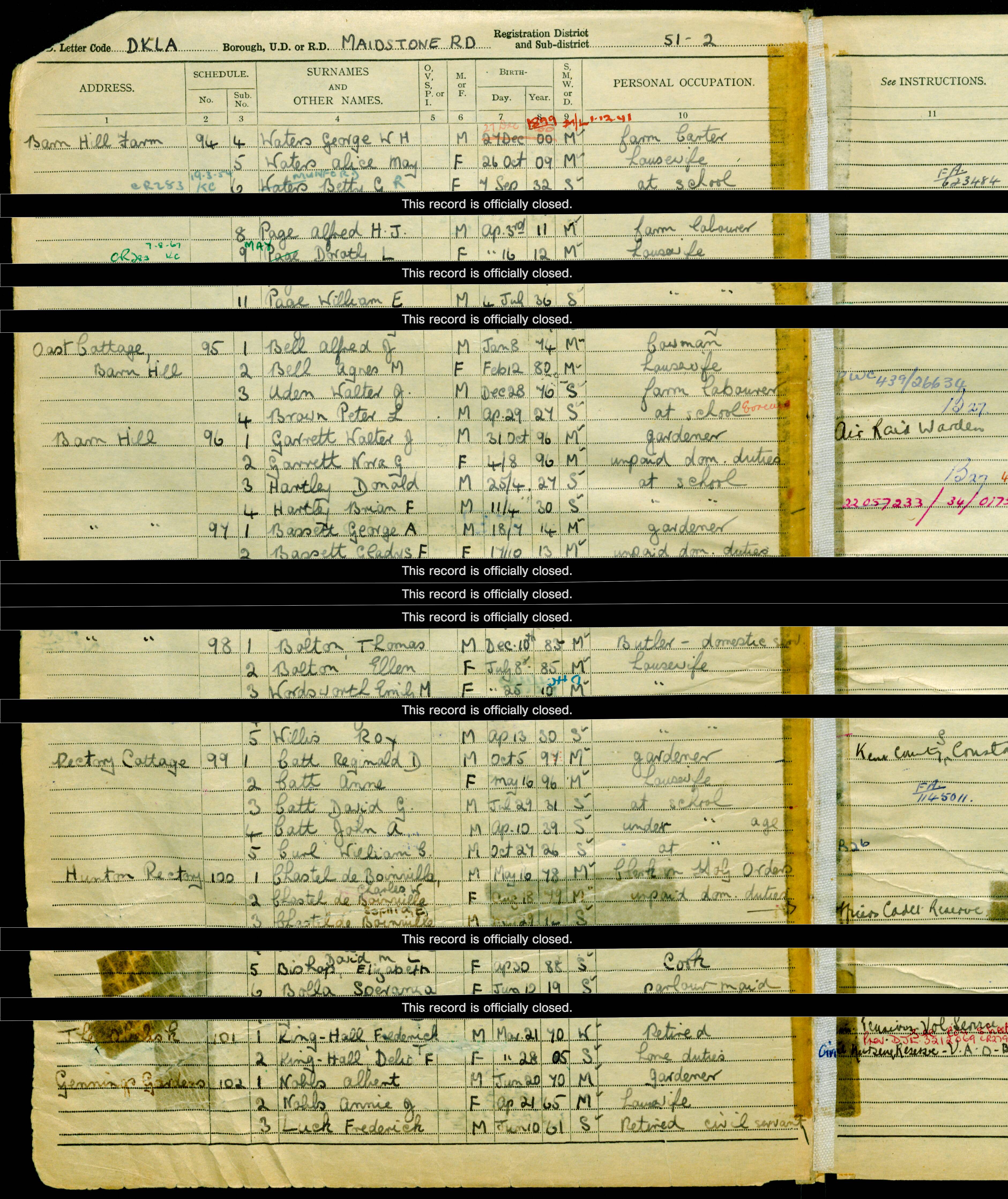 • Occupation: Gardener, 1939, Barn Hill, Hunton, Maidstone R.D., Kent, England.