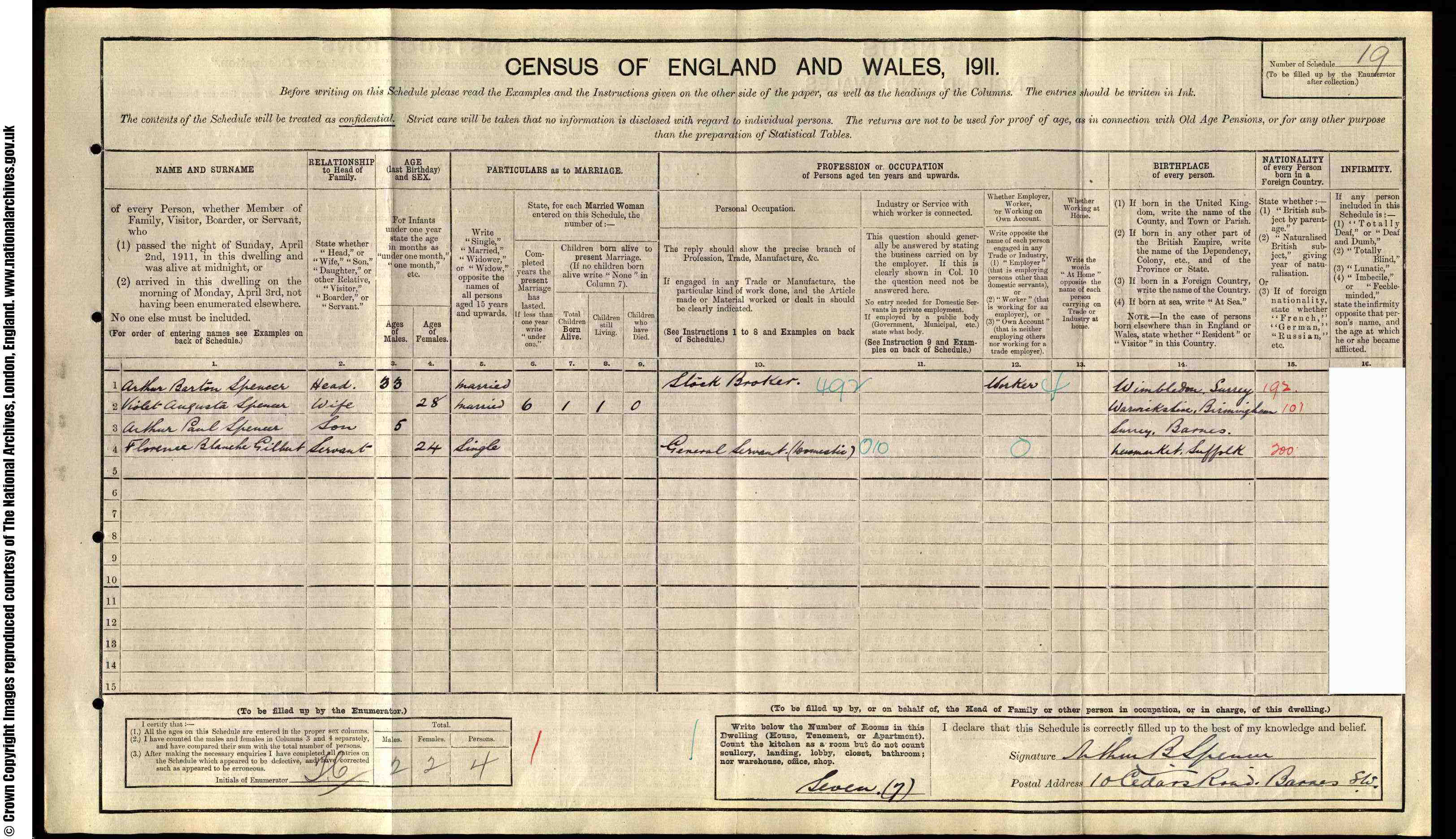 • Lived at: 10 Cedars Road, 1911, Barnes, Middlesex.