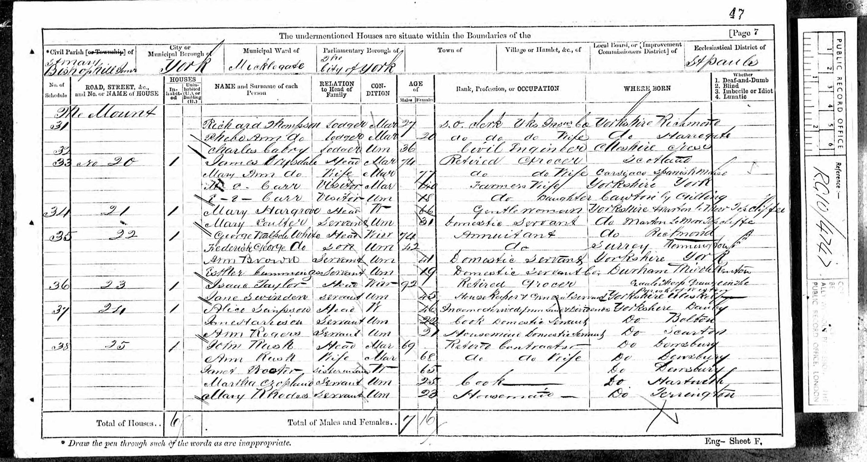 • Occupation: Fund Holder, 1861, York, Yorkshire, England. 3