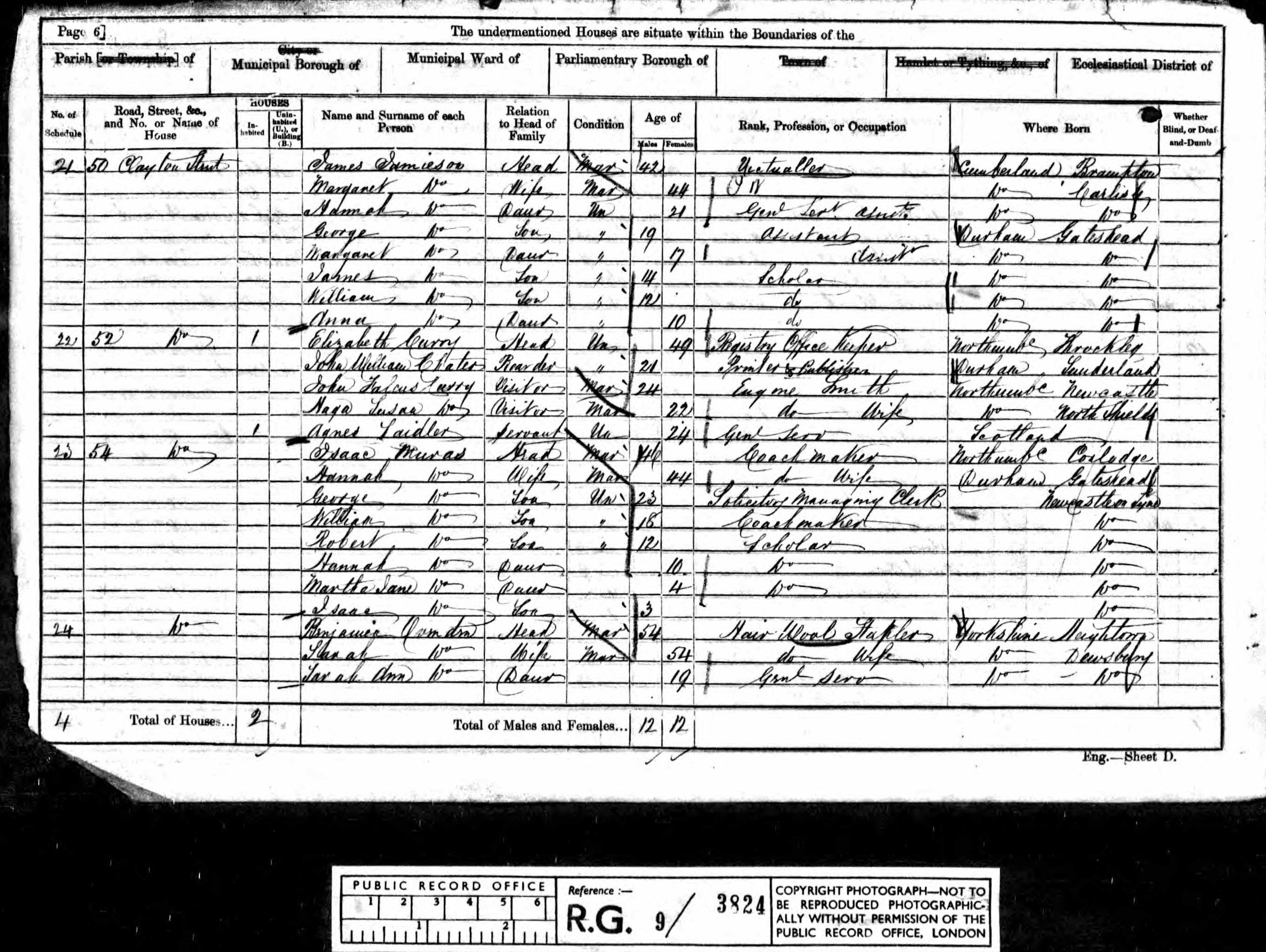 • Lived at: 86 Clayton Street, 1851, Newcastle, Northumberland, England.