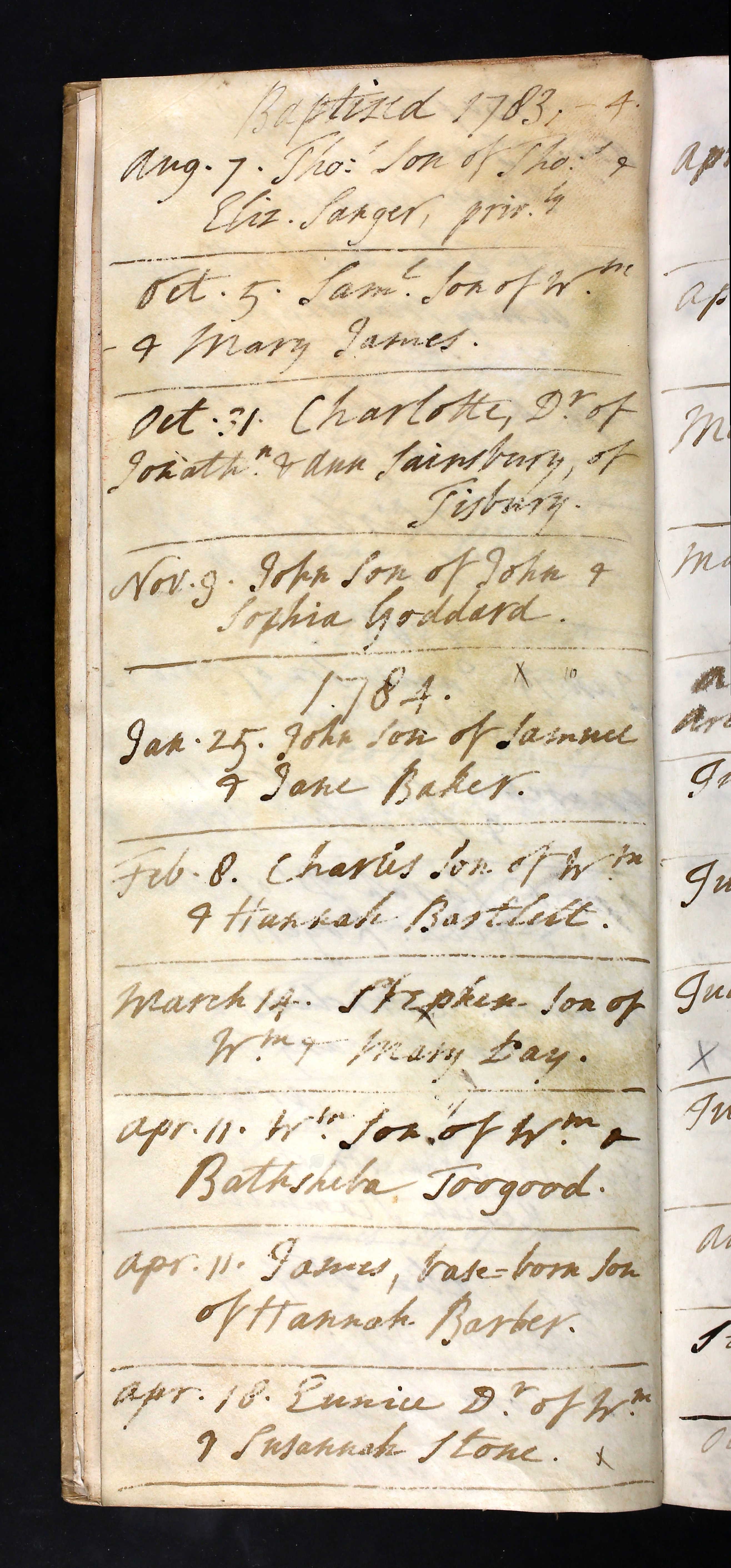 • Baptism Image: Parish Record, 1784, Semley Church, Semley, Wiltshire, England.