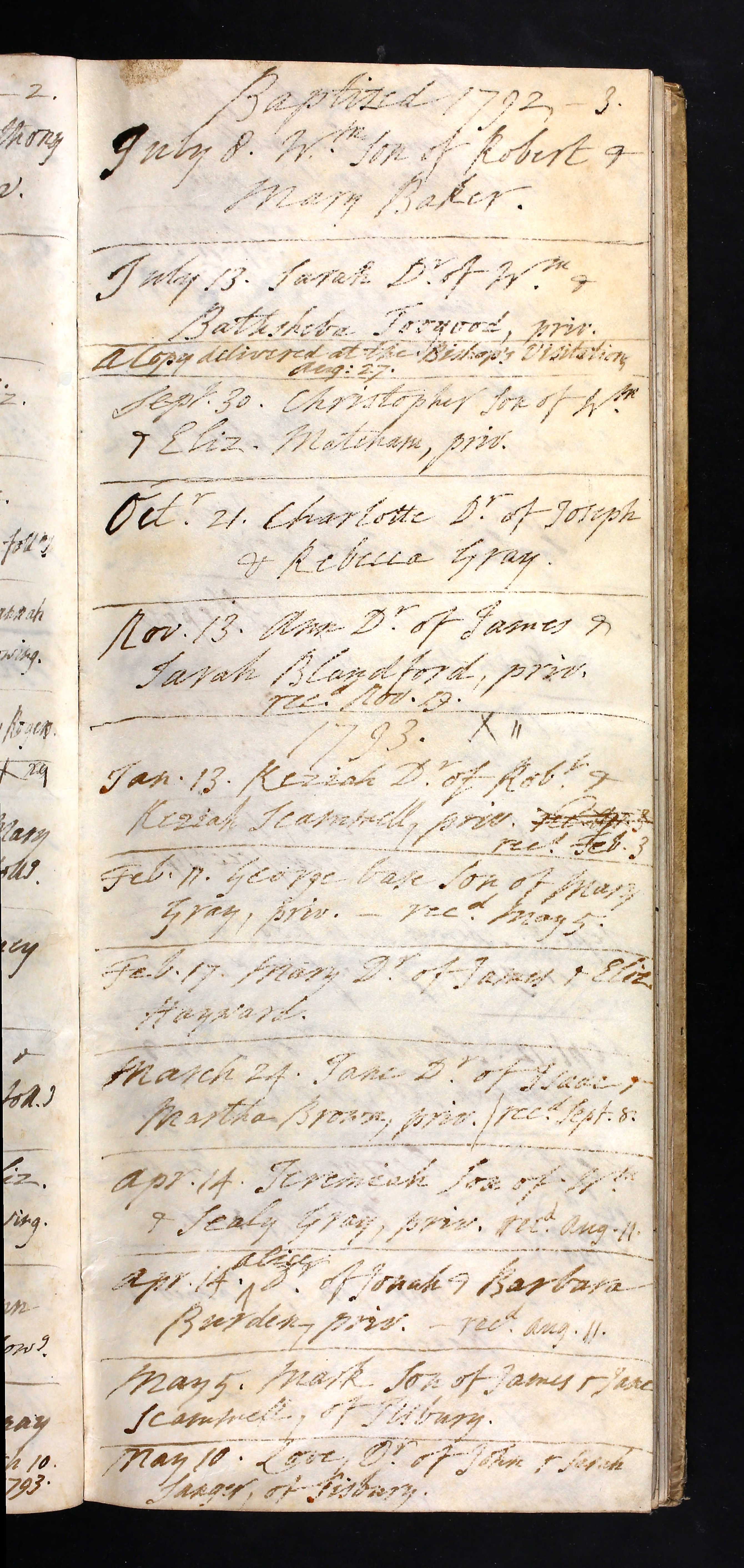 • Baptism Image: Parish Record, 1792, Semley Church, Semley, Wiltshire, England.