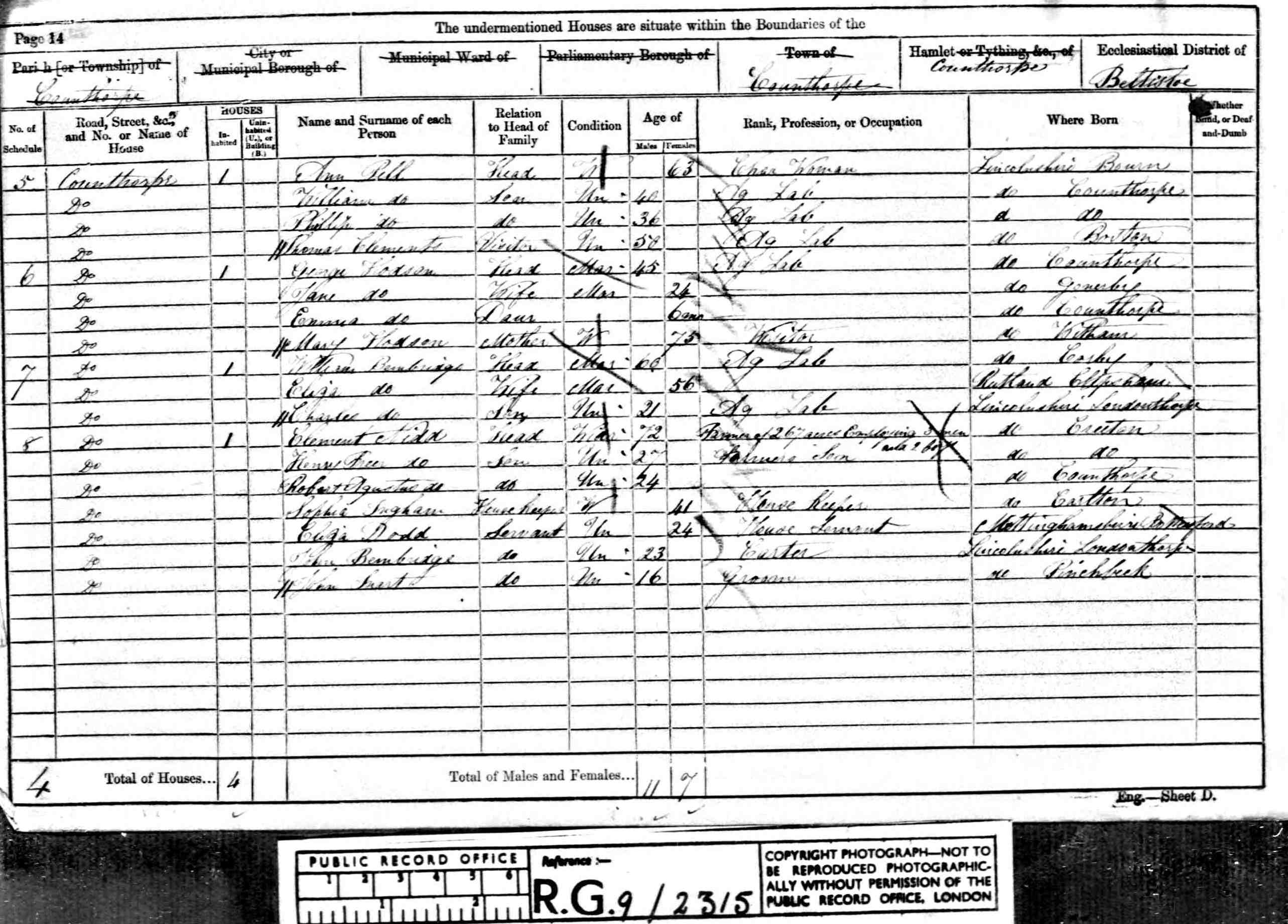 • Occupation: farmer of 220 acres Employing 2 Labourer, 1851, Counthorpe, Lincolnshire, England. 6 7 • Lived at: Counthorpe, 1861, Counthorpe, Lincolnshire, England. 3