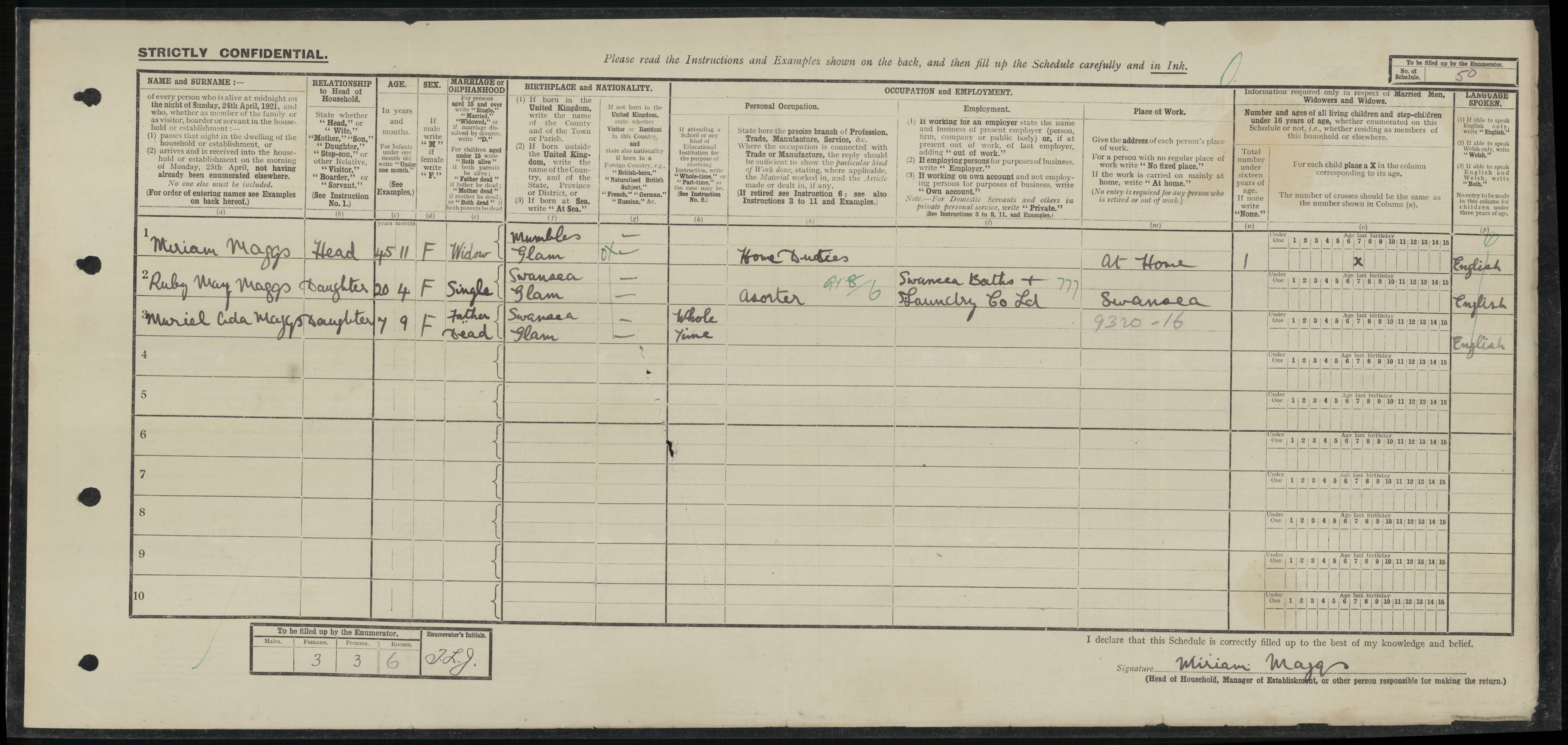 • Lived at: 7 Victoria Avenue, 1921, Swansea, Glamorgan, Wales. |