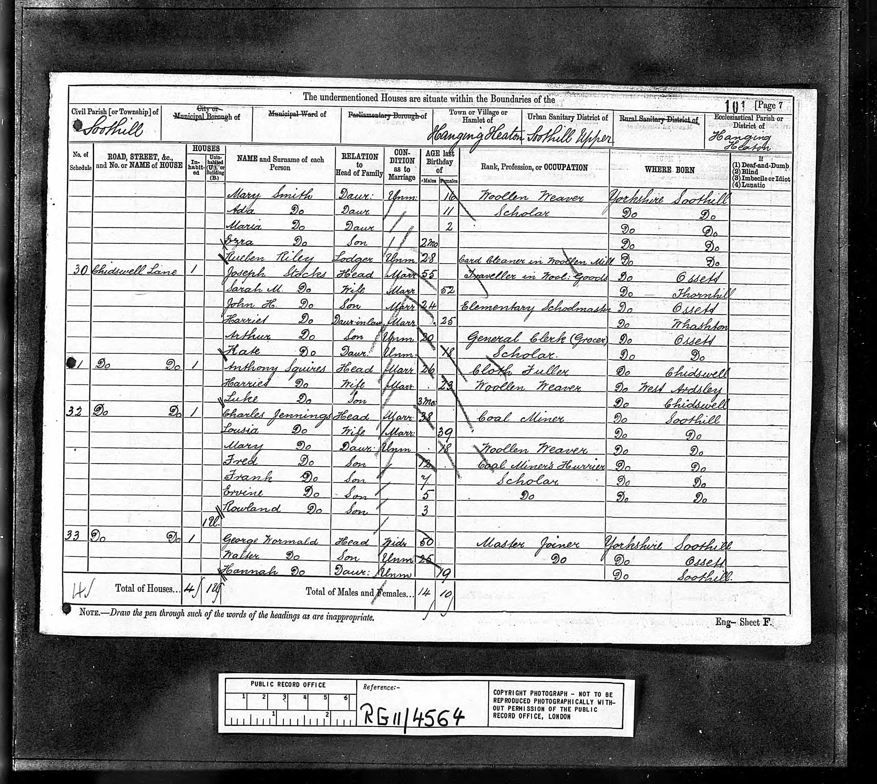 • Lived at: Chickenby Heath, 1861, Ossett and Gawthorpe, Holy and Undivided Trinity, Yorkshire, England.
