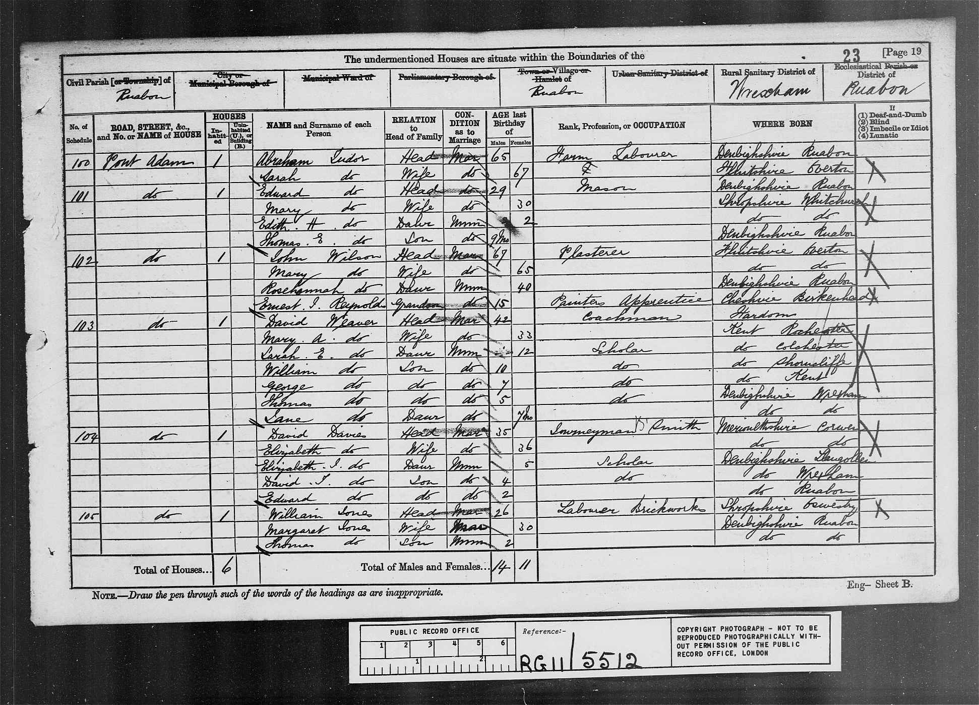 • Lived at: Pont Adam, Ruabon, 1881, Wrexham, Denbighshire, Wales.