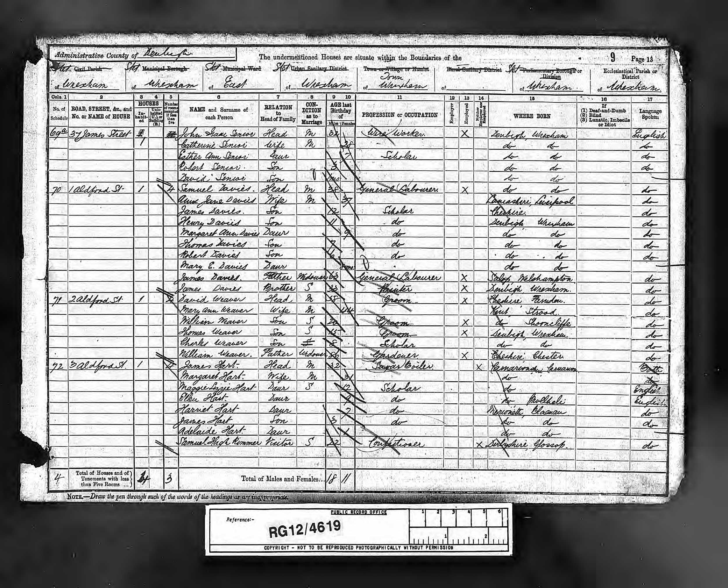 • Lived at: 2 Aldford Street, 1891, Wrexham, Denbighshire, Wales.
