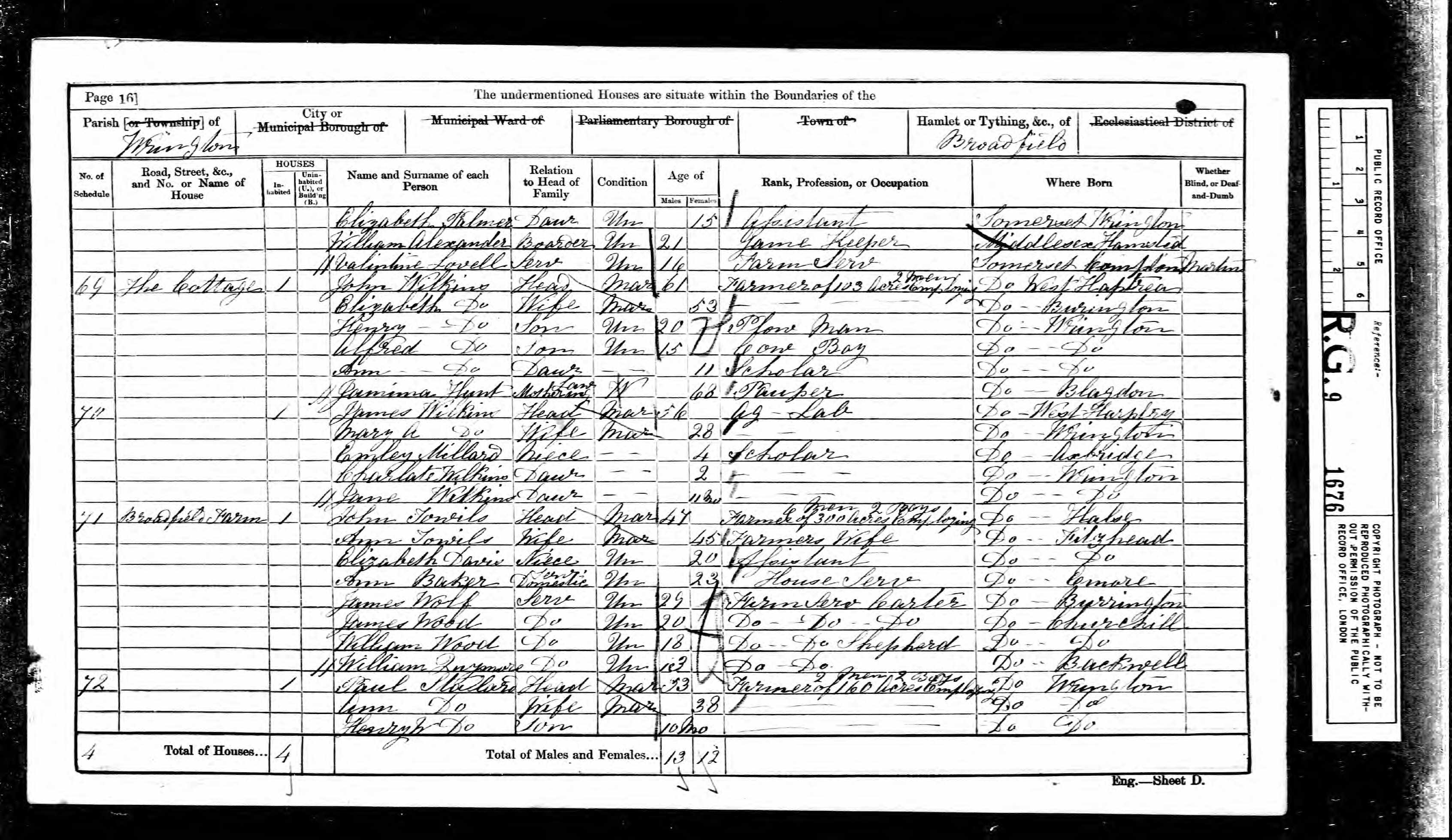 • Lived at: Broadfield, 1841, Wrington, Somerset, England.