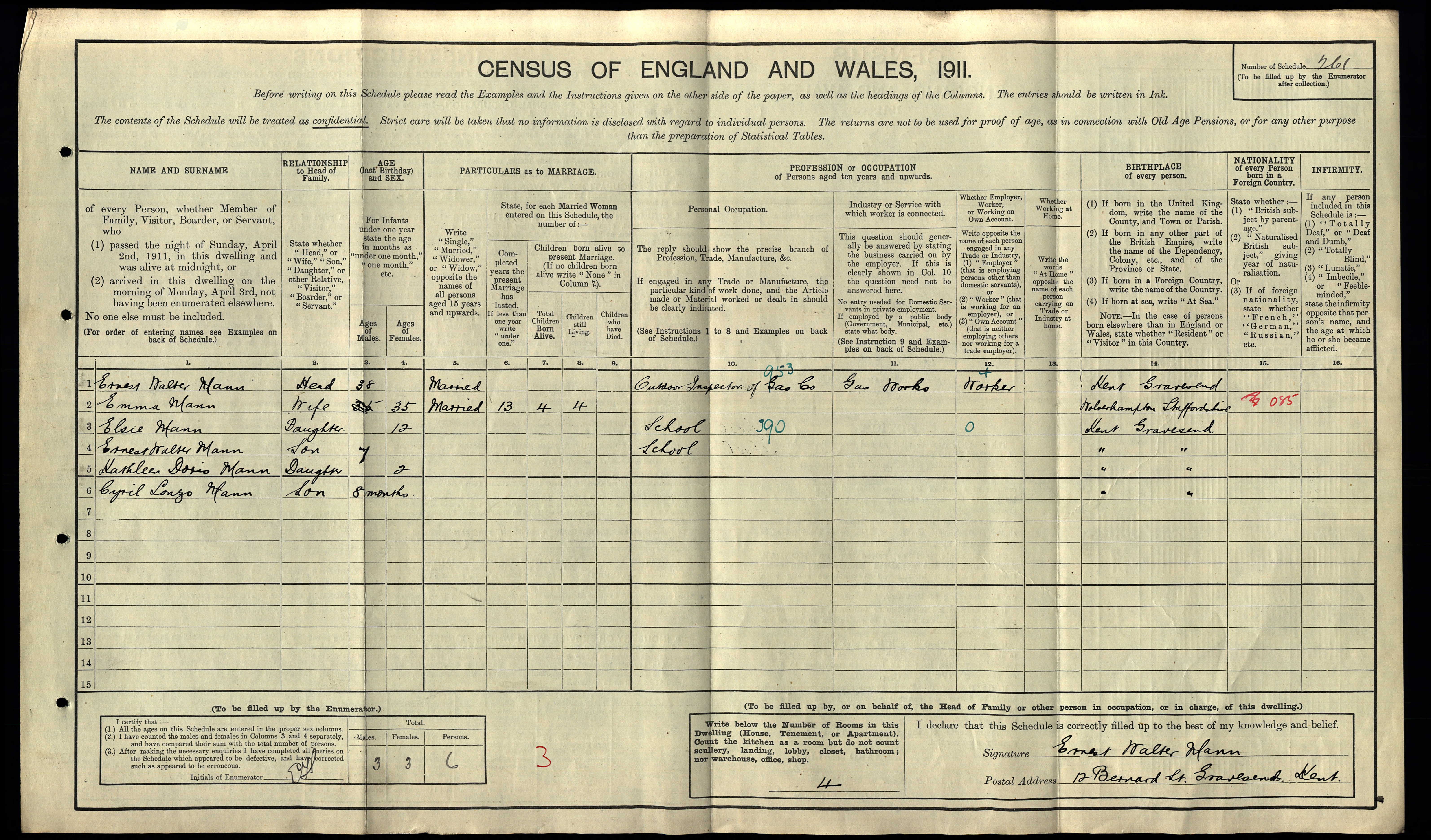 • Lived at: 12 Bernard Street, 1911, Gravesend, Kent, England.