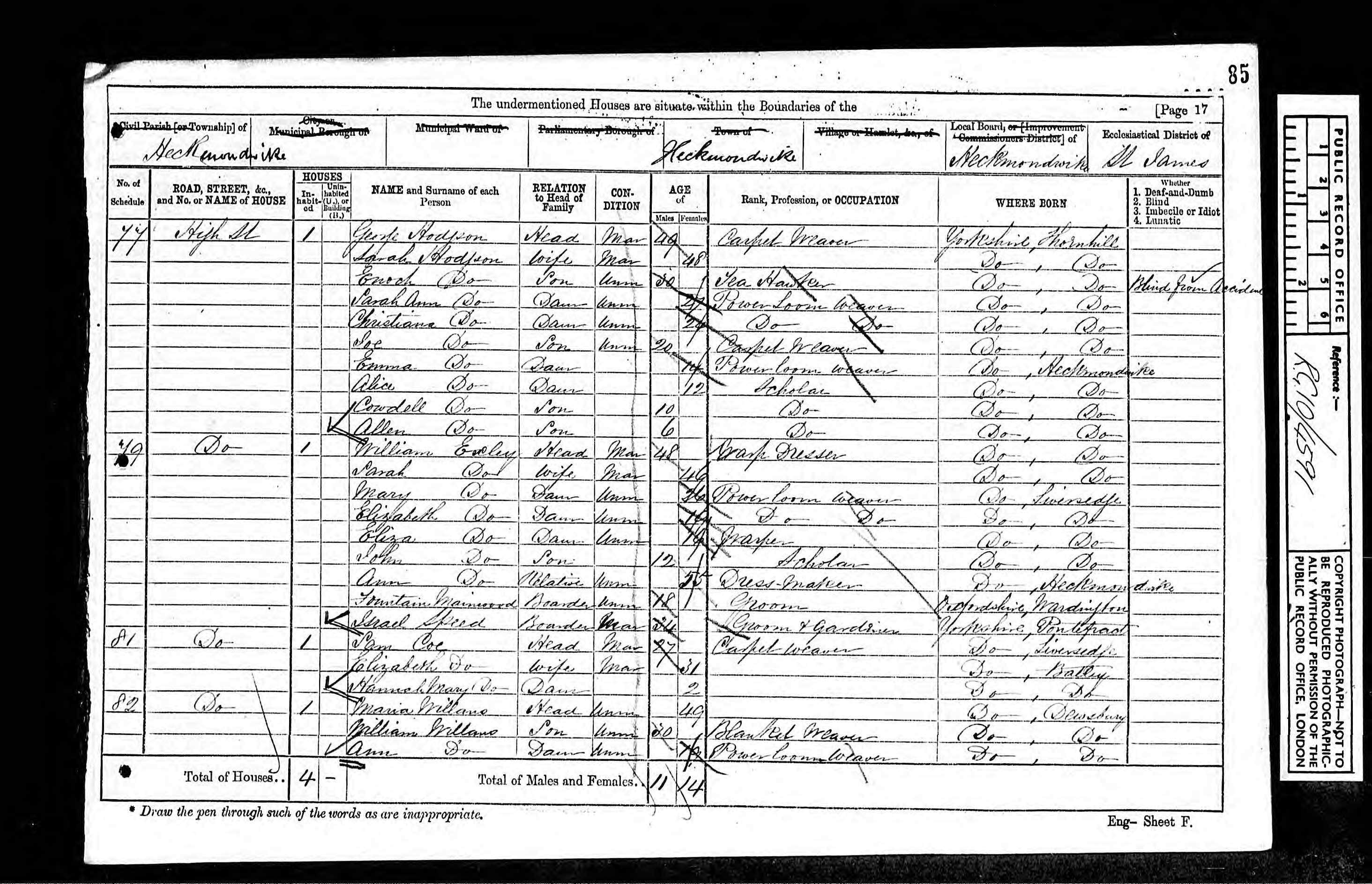 • Lived at: Heckmondwike, 1871, Dewsbury, Yorkshire, England.