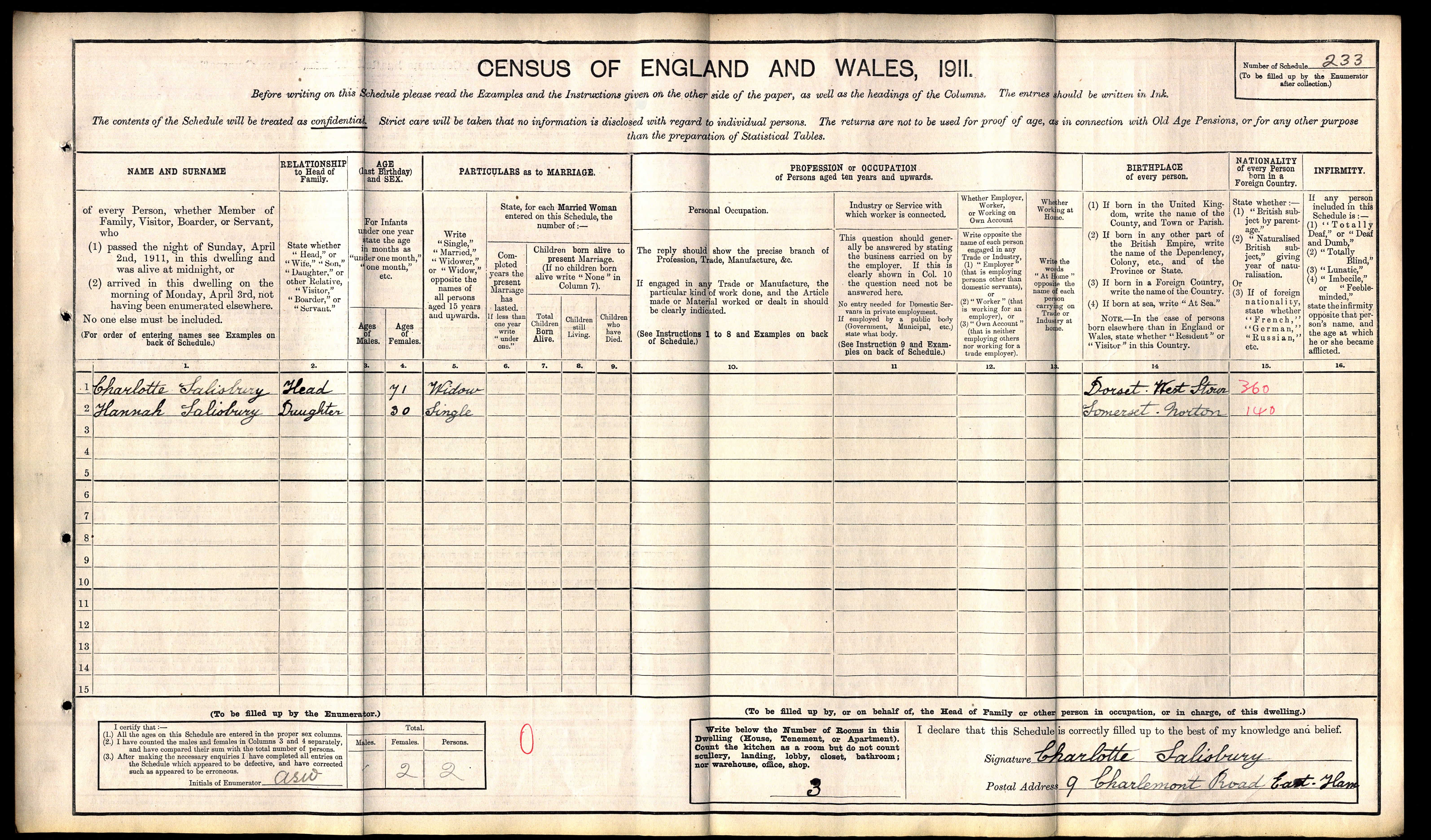 • Lived at: 9 Charlemont Road, 1911, West Ham, London. |