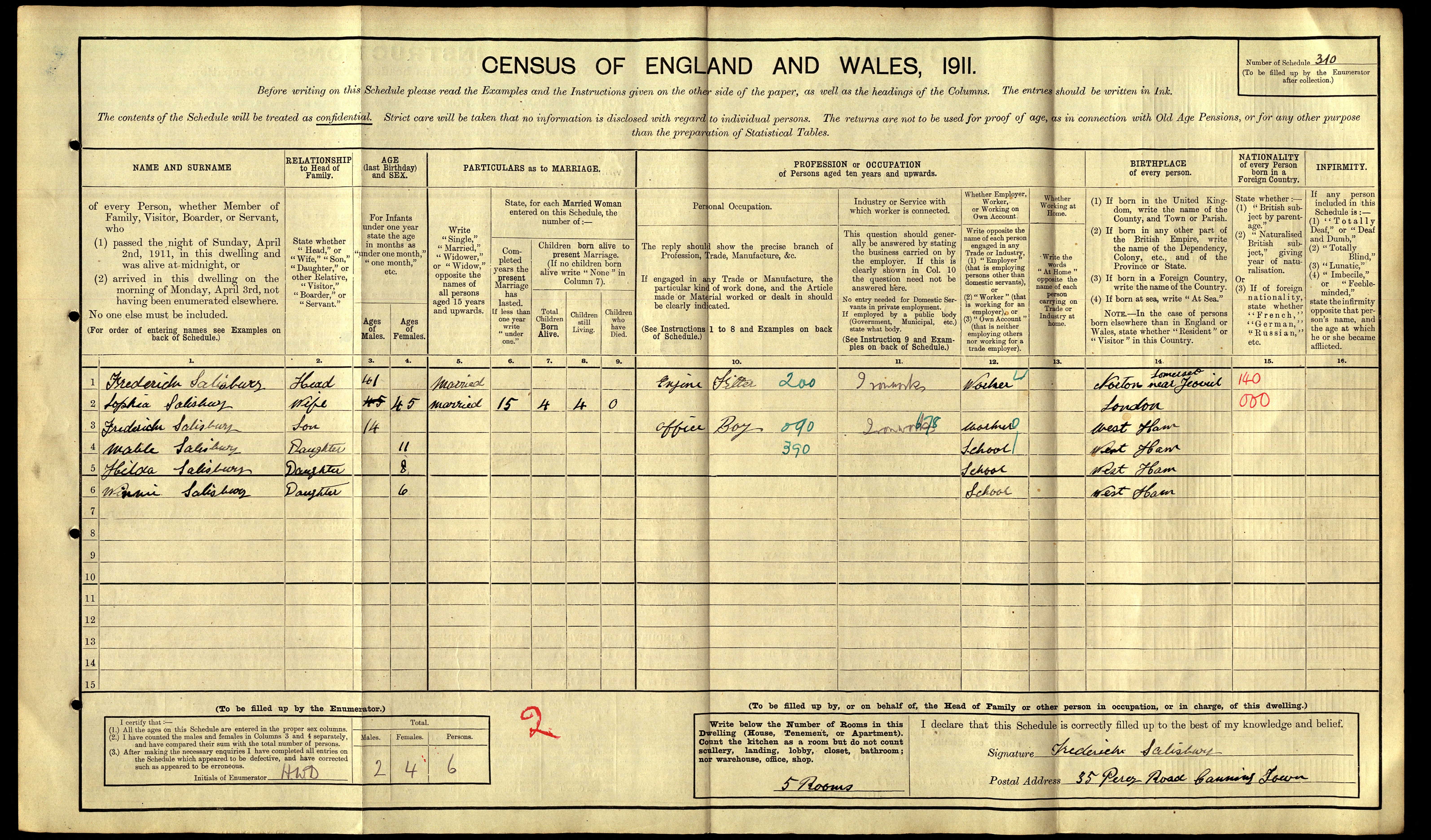• Lived at: 35 Percy Road, 1911, West Ham, London.