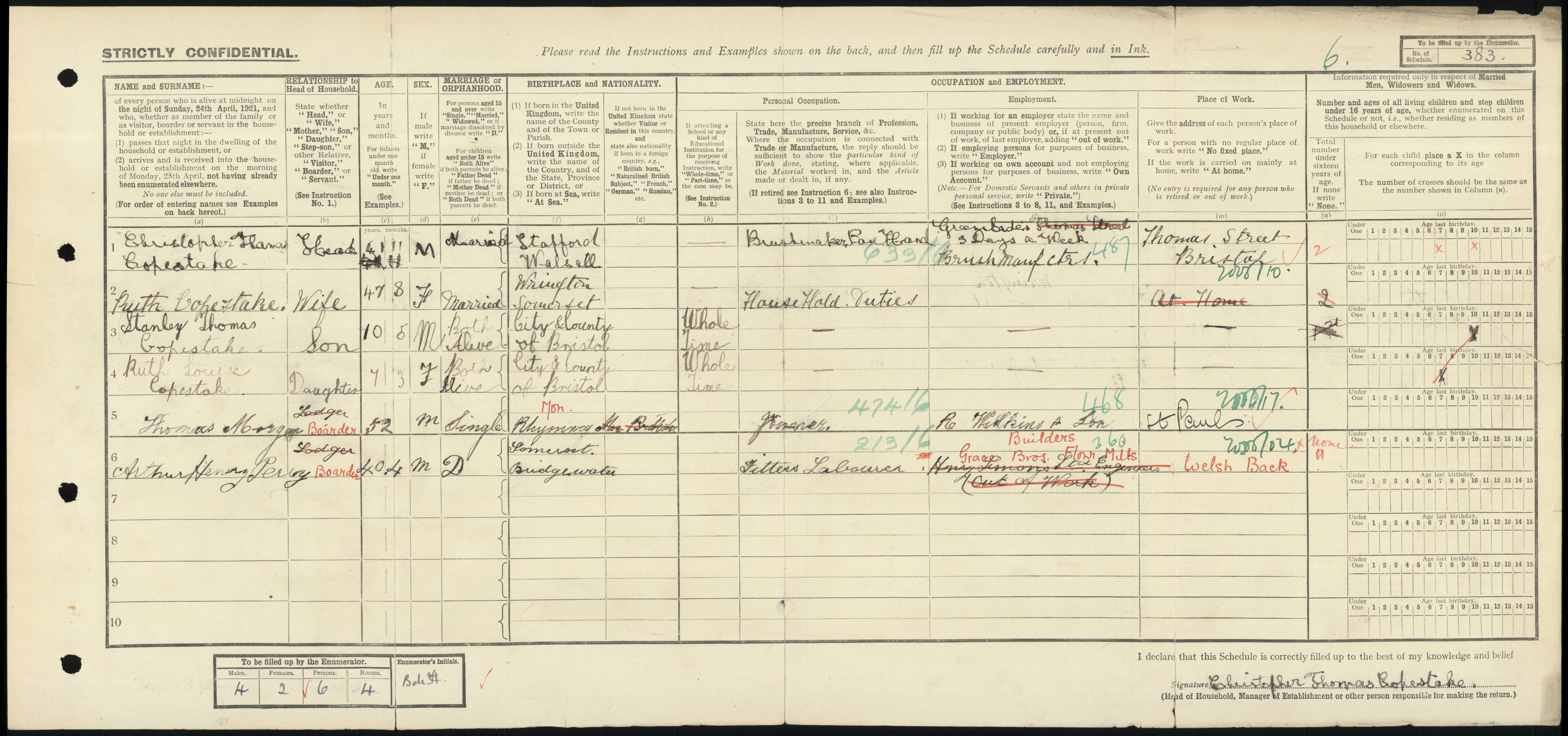 • Lived at: 14 Upper Cheltenham Place, Bristol, Gloucestershire, England, 1921.