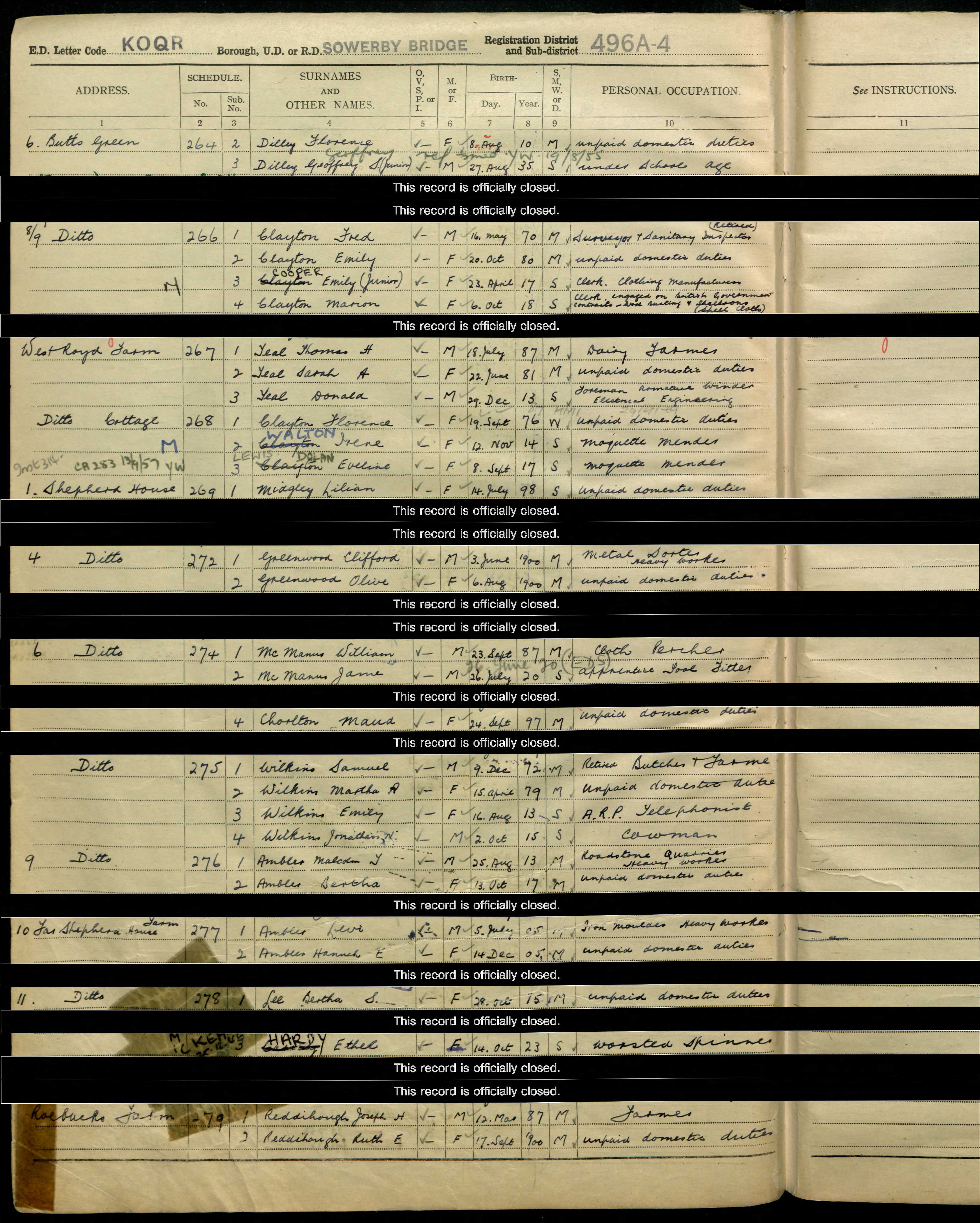 • Lived at: 8 Shepherds House, 1939, Sowerby Bridge, Yorkshire.