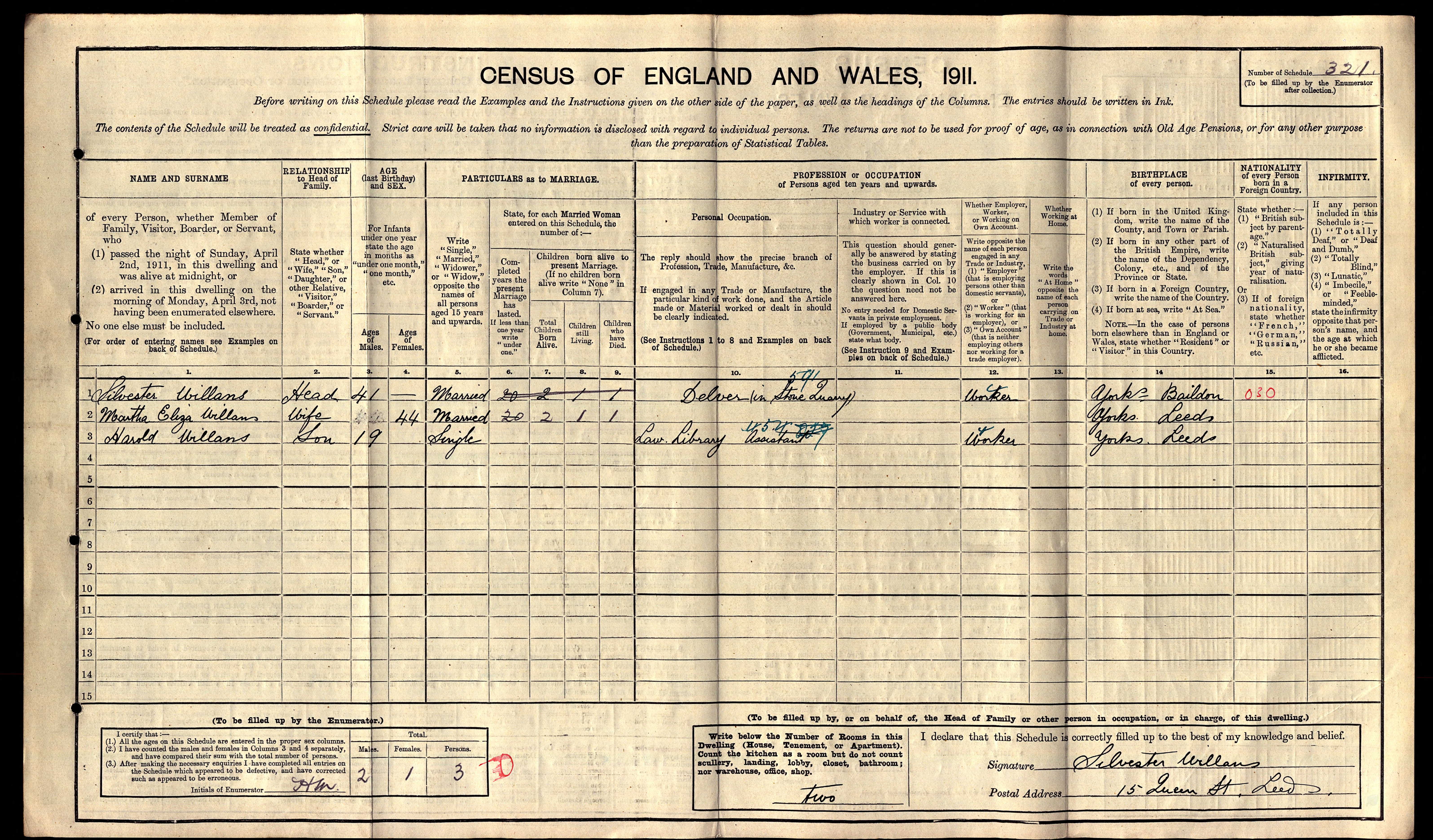 • Occupation: Law Library Assistant, 1911, Leeds, Yorkshire, England.