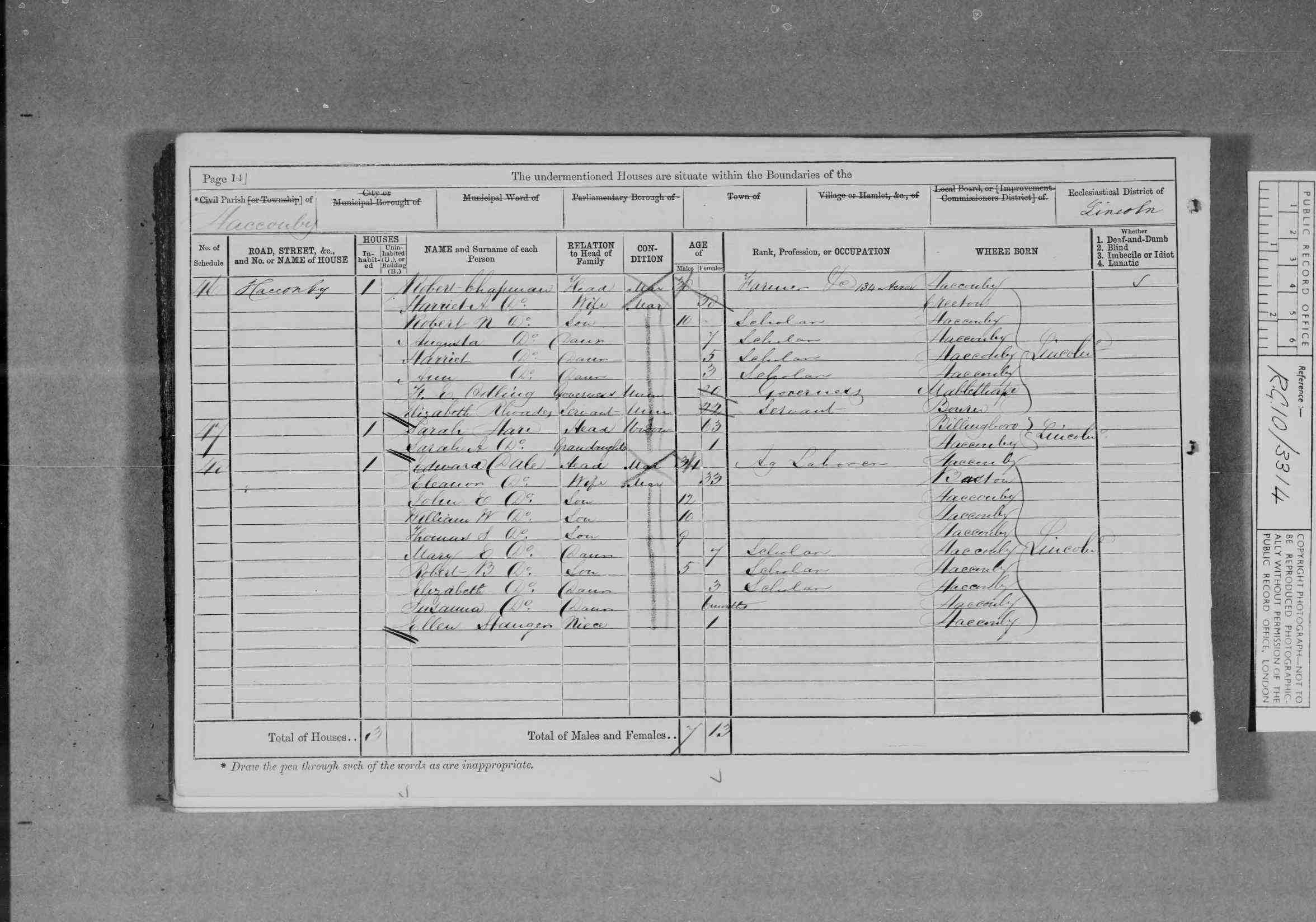 • Lived at: Private, 1861, Hacconby, Lincolnshire, England. 5