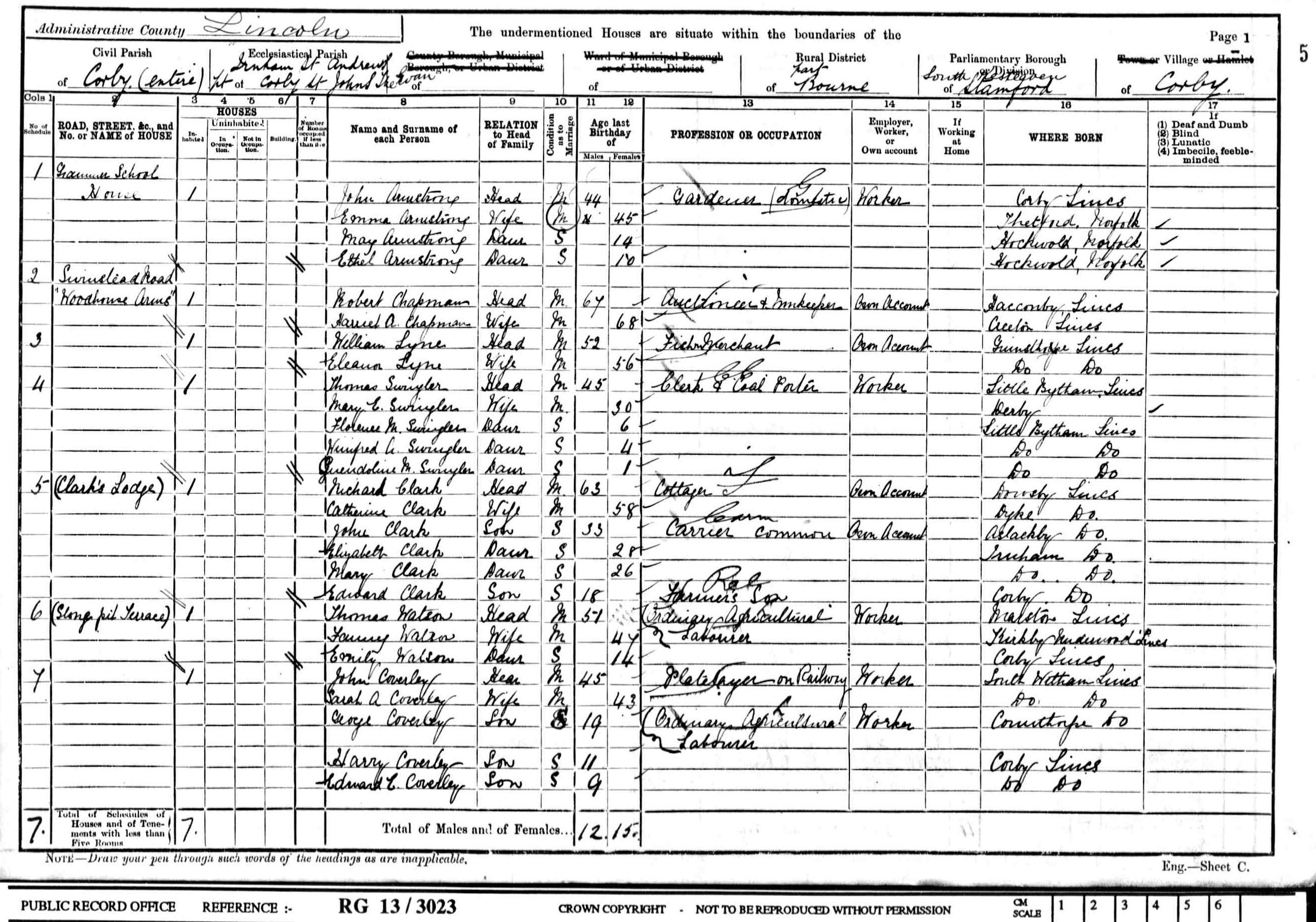 • Lived at: New Inn, 1881, Corby, Lincolnshire, England. 2 7
