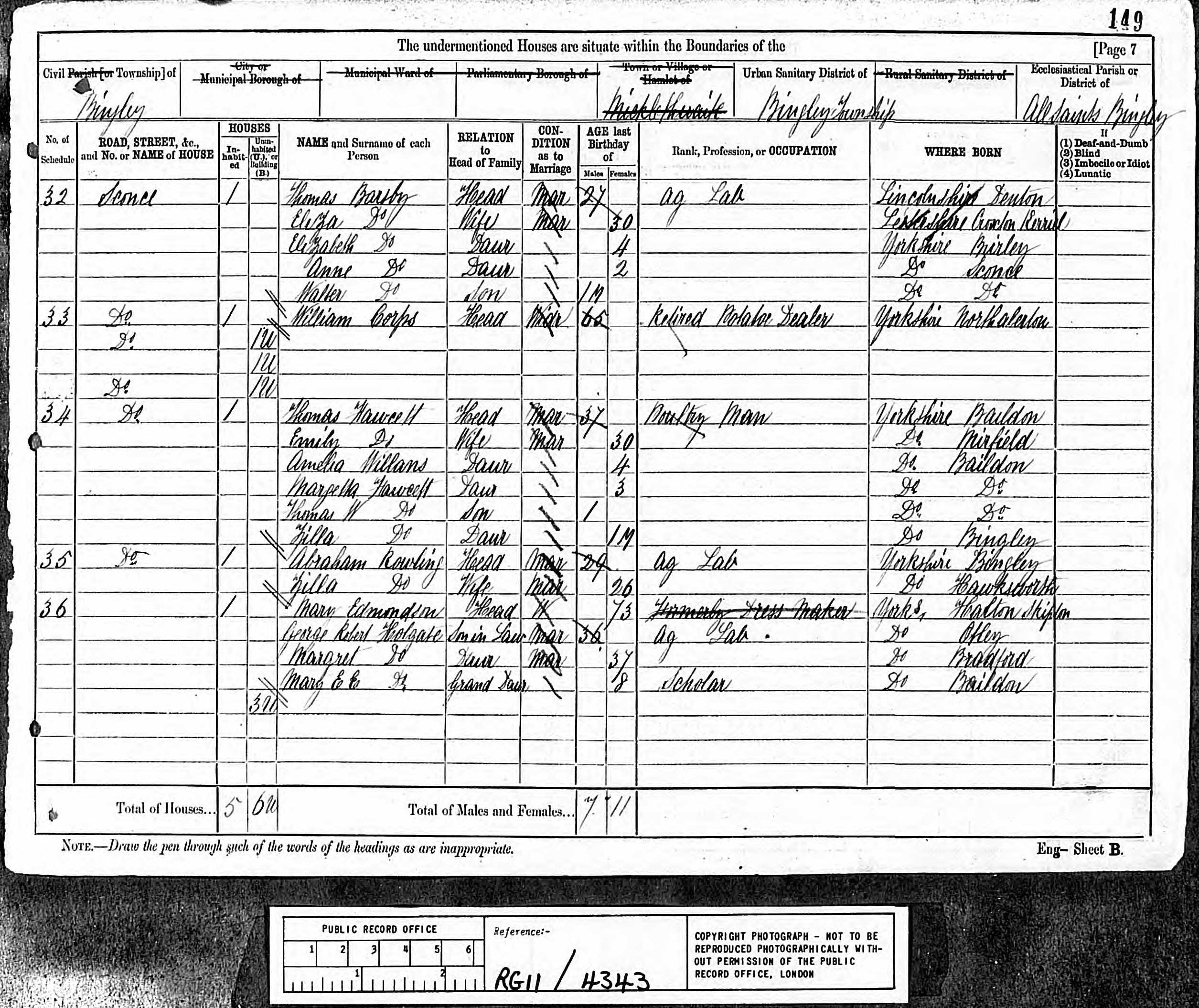 • Lived at: Scone, 1881, Bingley, Yorkshire.