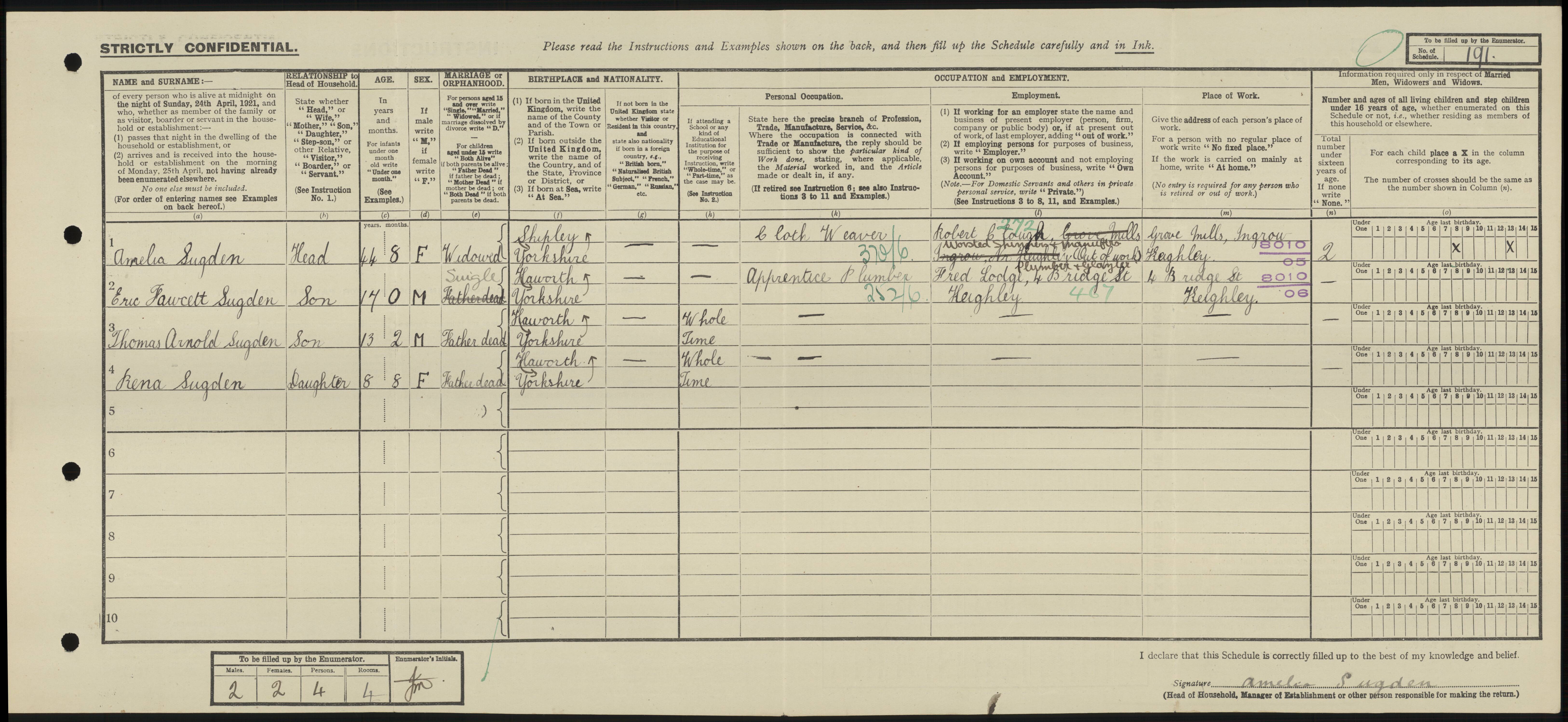 • Occupation: Cloth Weaver, 1921, Keighley, Yorkshire.
