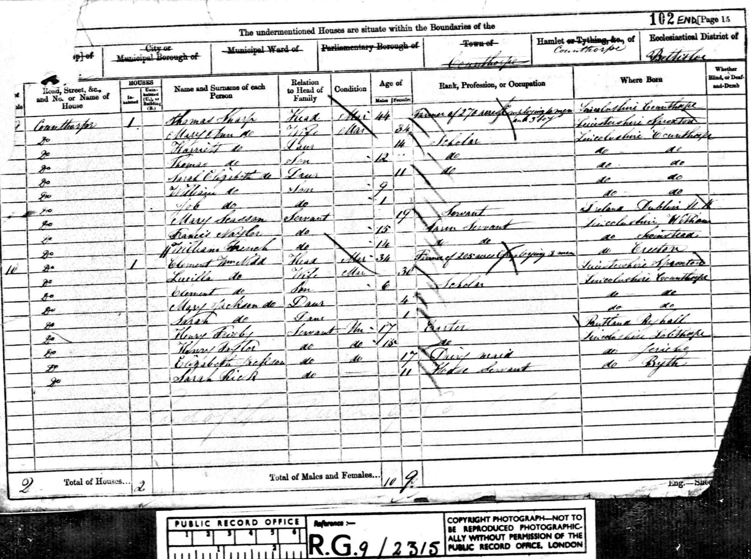 • Occupation: farmer 205 acres employing 3 men, 1861, Counthorpe, Lincolnshire, England. 2 6 7 • Alt. Death: as per Letters of Admin, 24 Jun 1865, Counthorpe, Lincolnshire, England. 2 8 9