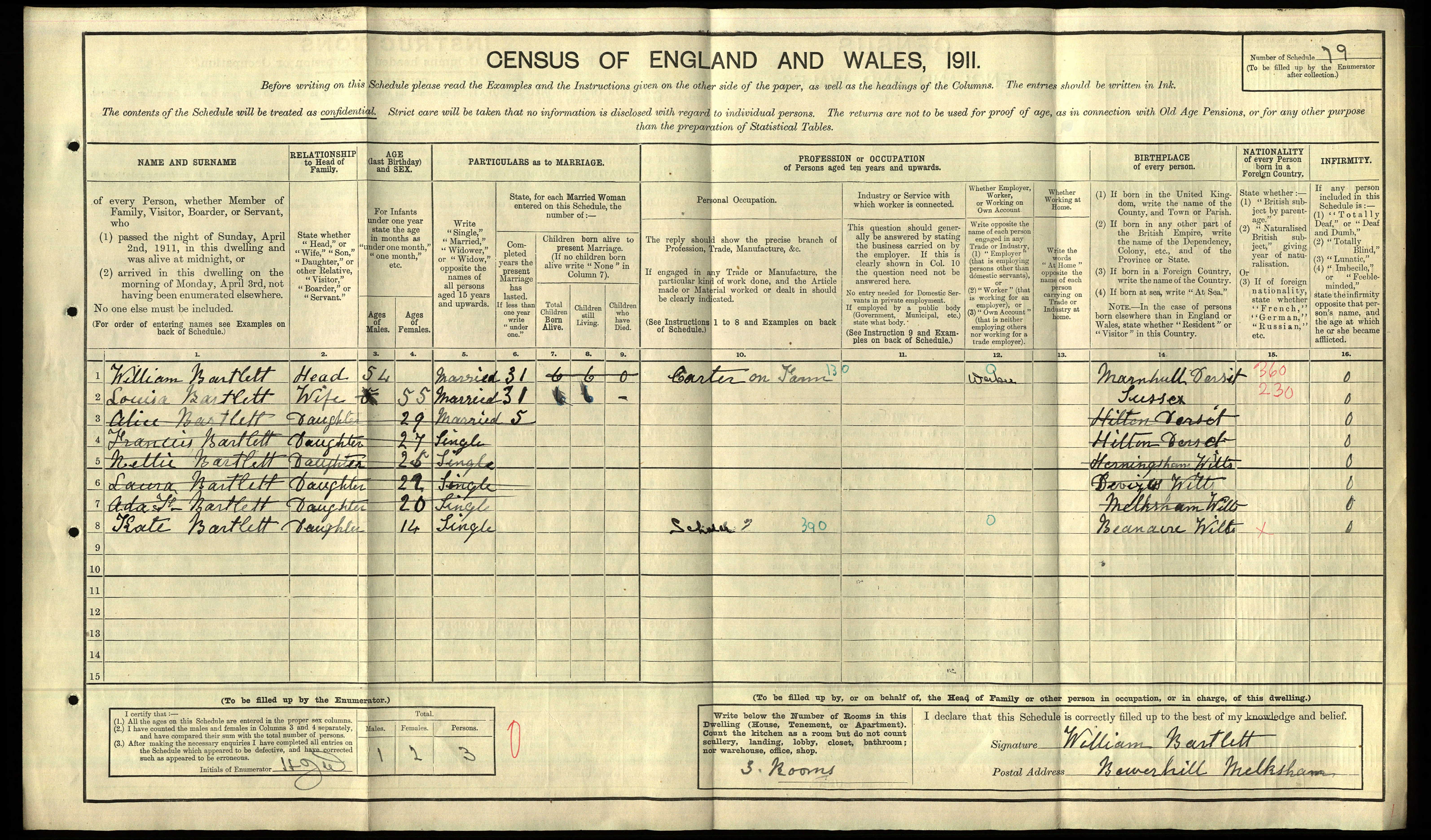 • Occupation: Carter, 1911, Bowerhill, Melksham. |