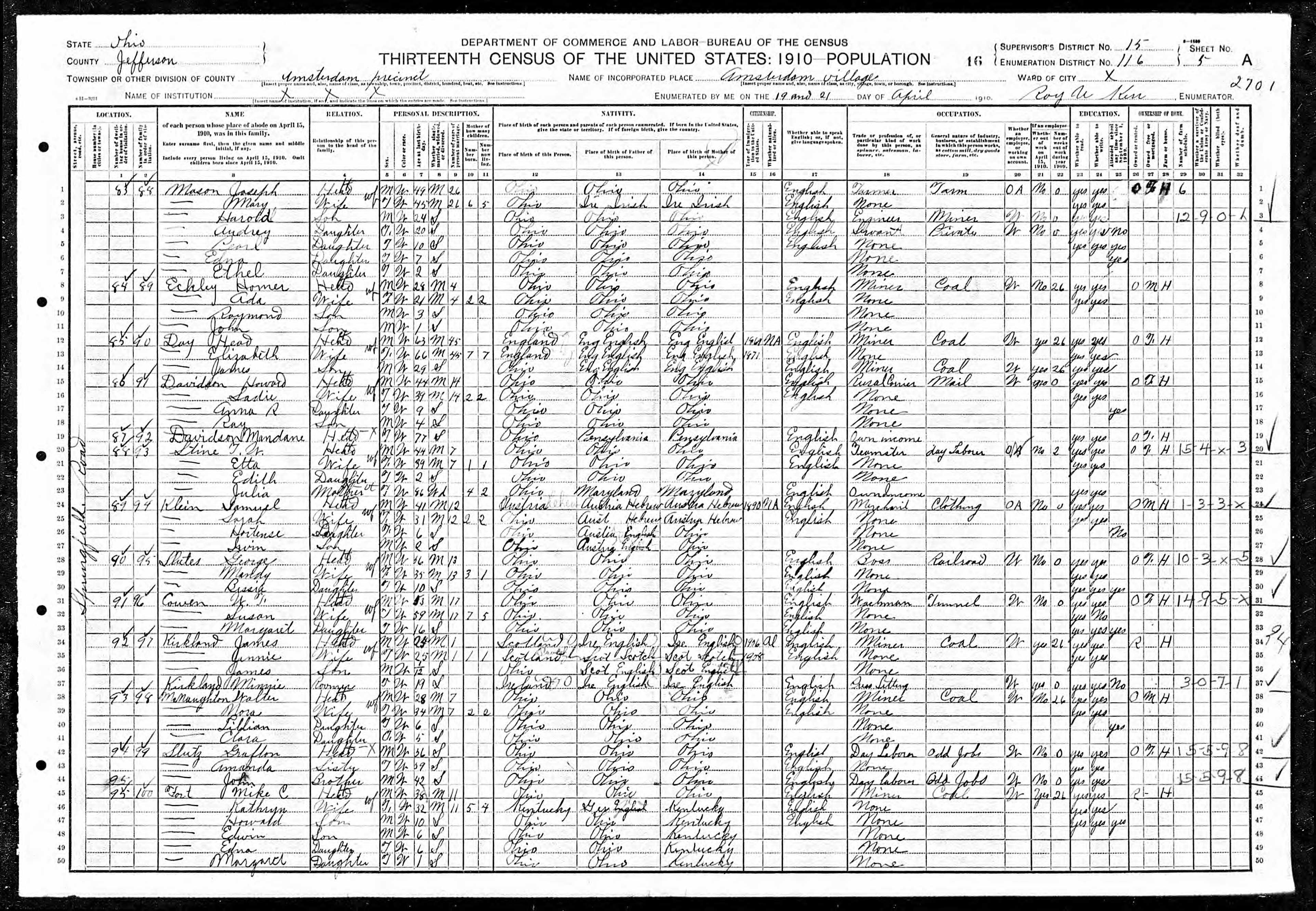 • Lived at: District 0110, Amerstam, 1910, Jefferson, Ohio.