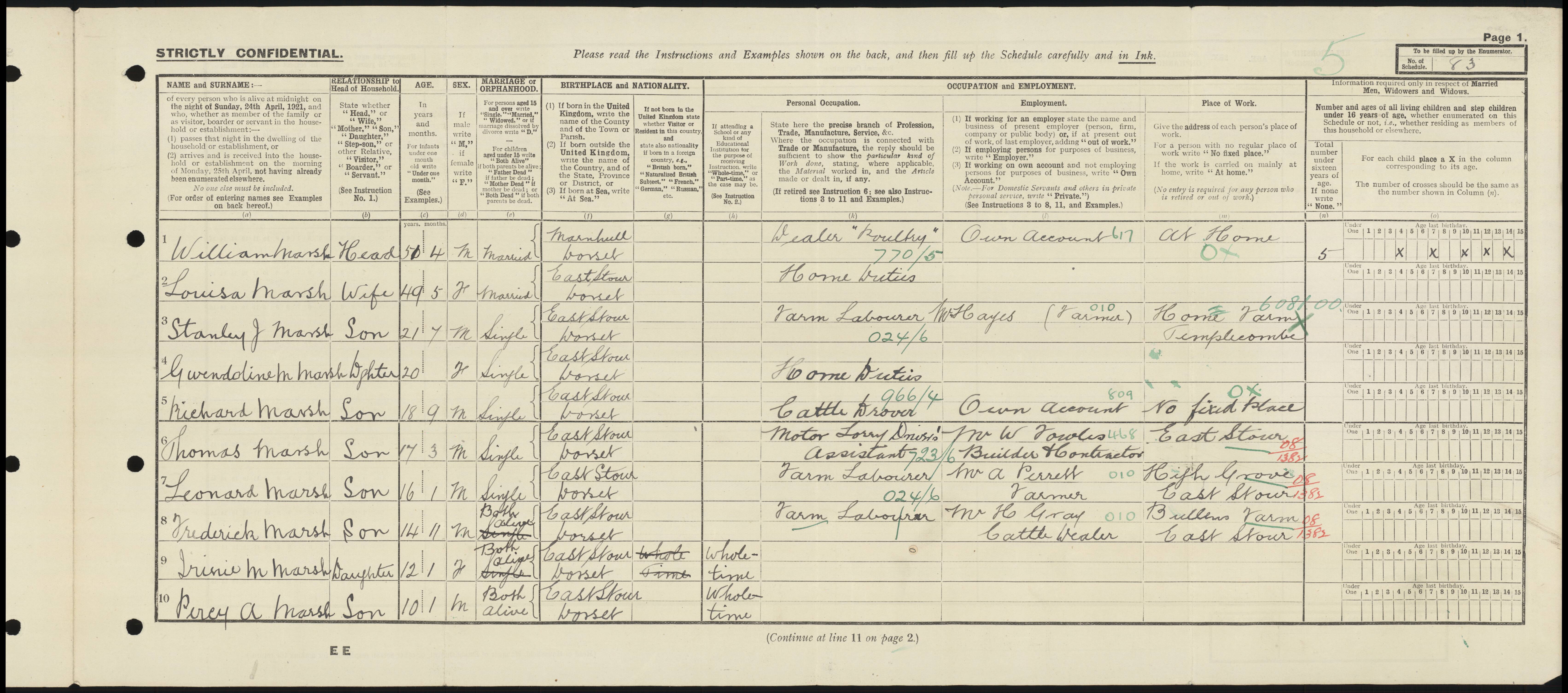 • Occupation: Labourer, 1911, East Stour, Dorset, England.