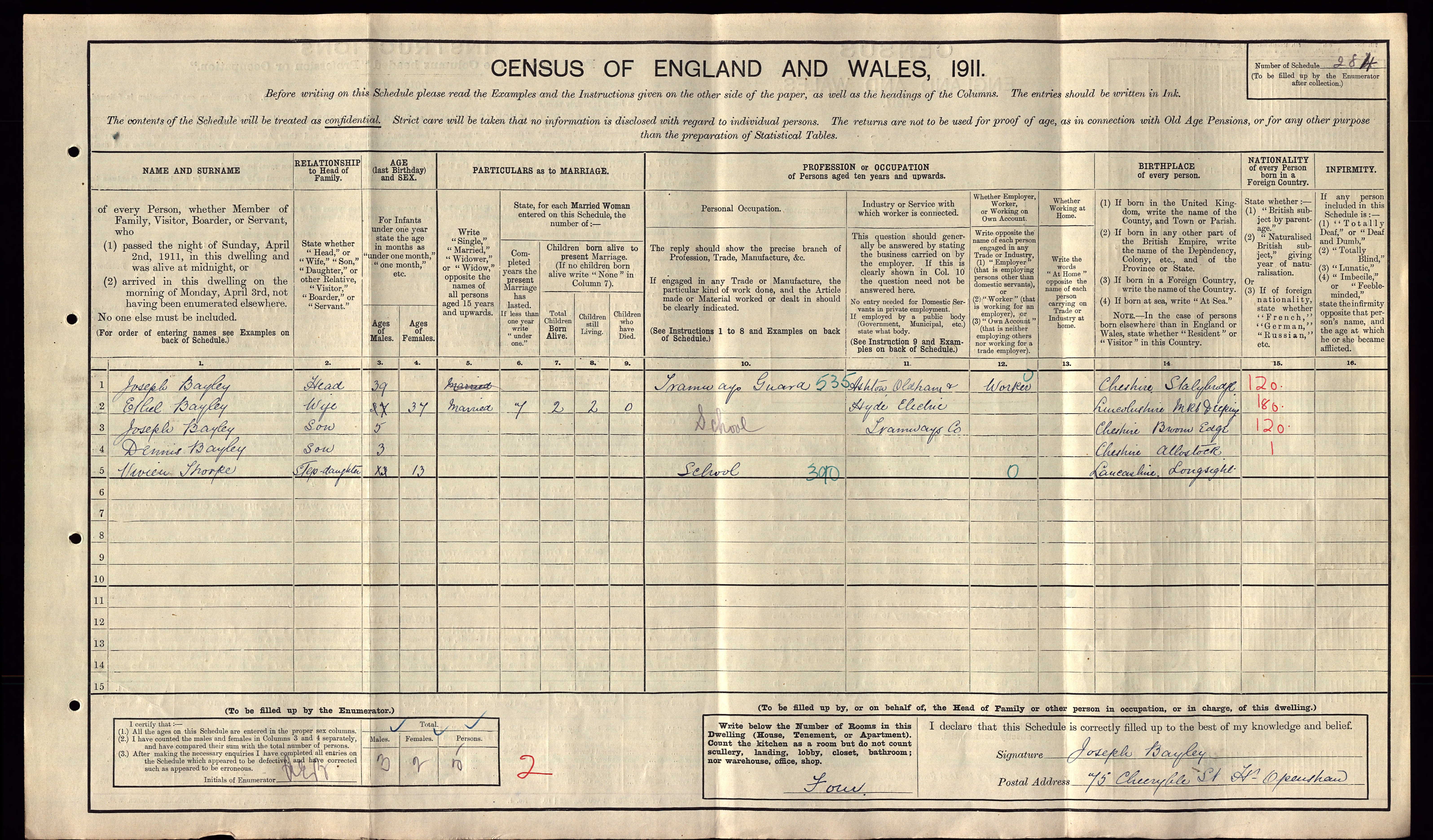 • Lived at: 75 Cherible Street, 1911, Openshaw.