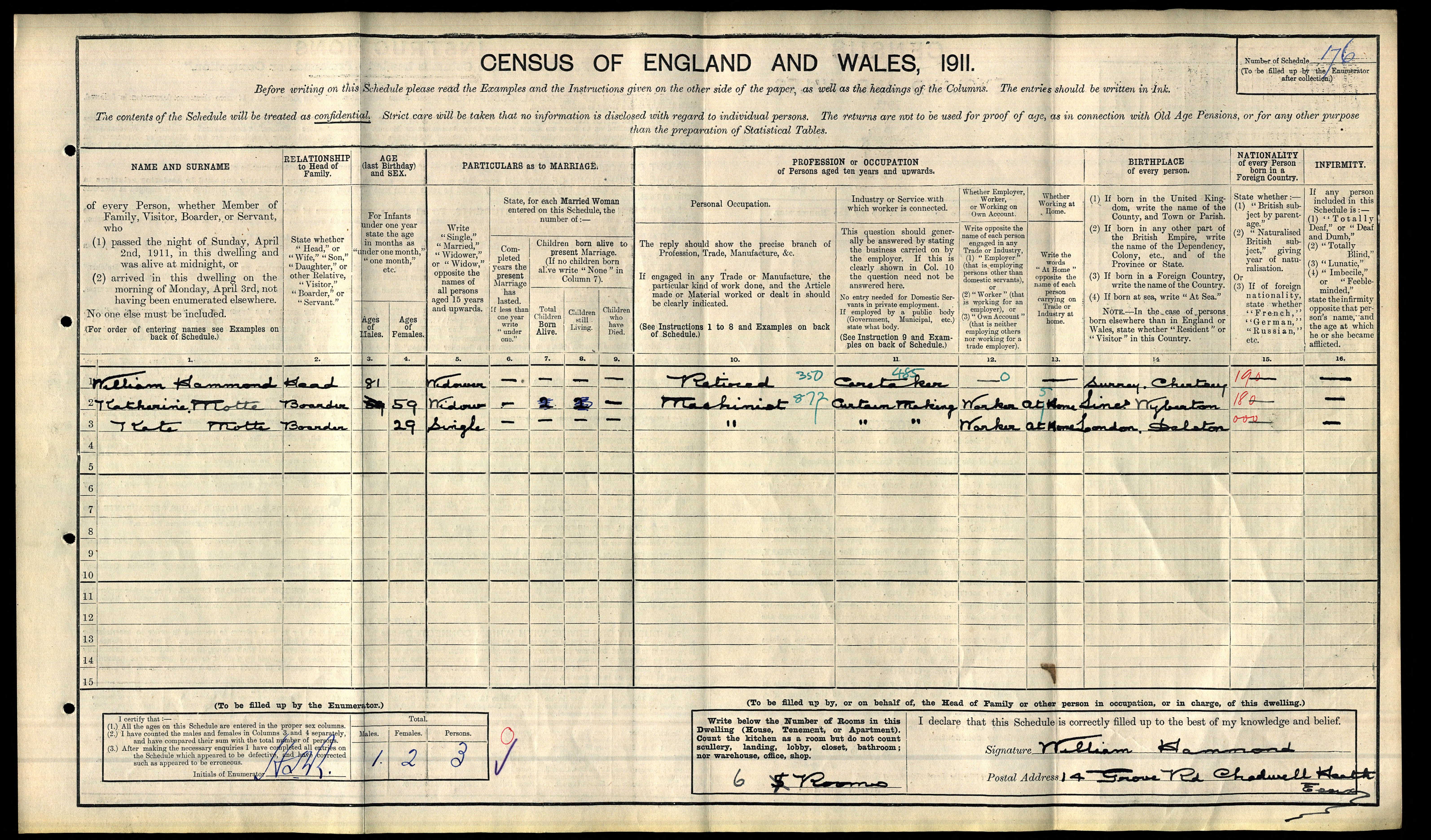• Lived at: 14 Grove Road, 1911, Chadwell Heath, Essex.