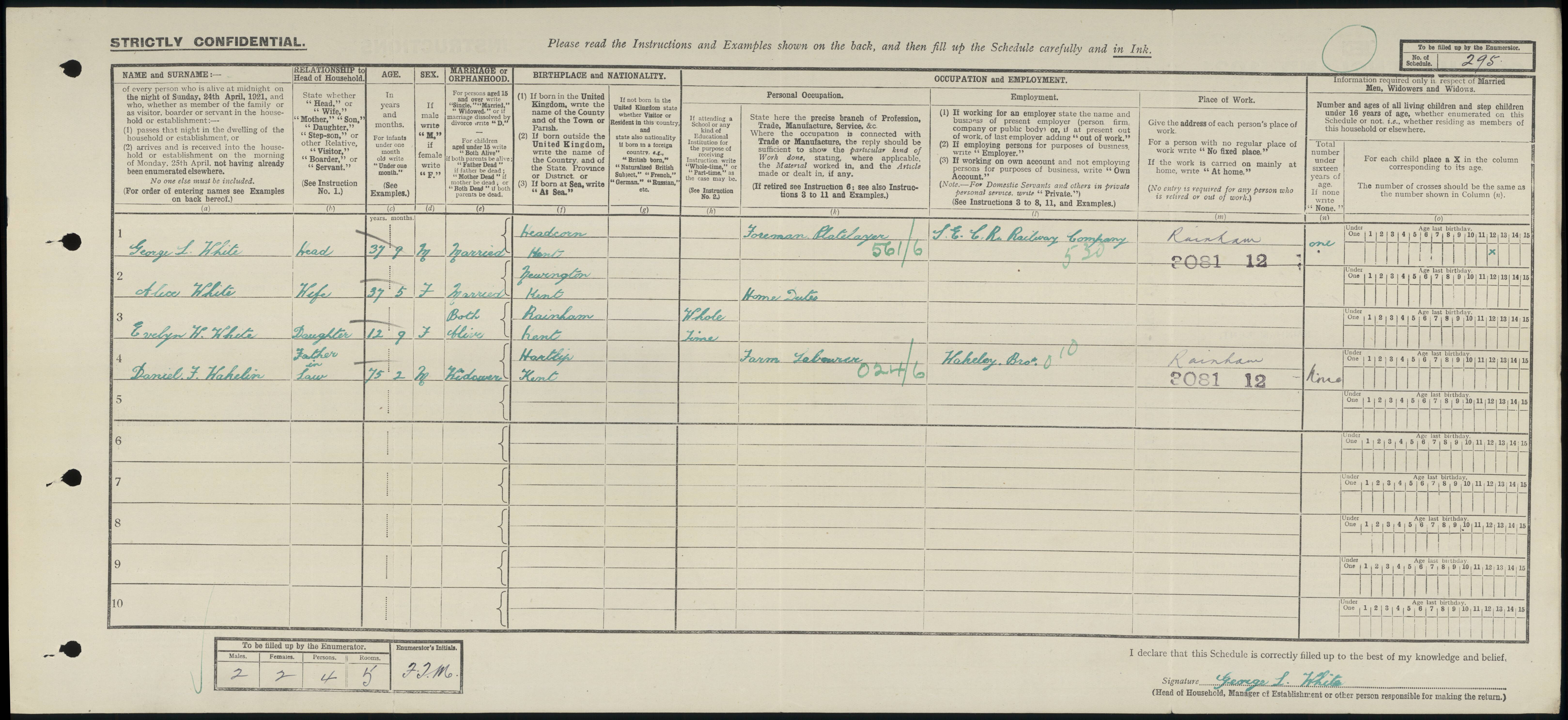 • Lived at: 6 Otterham Lane, 1891, Rainham Hollingbourne.