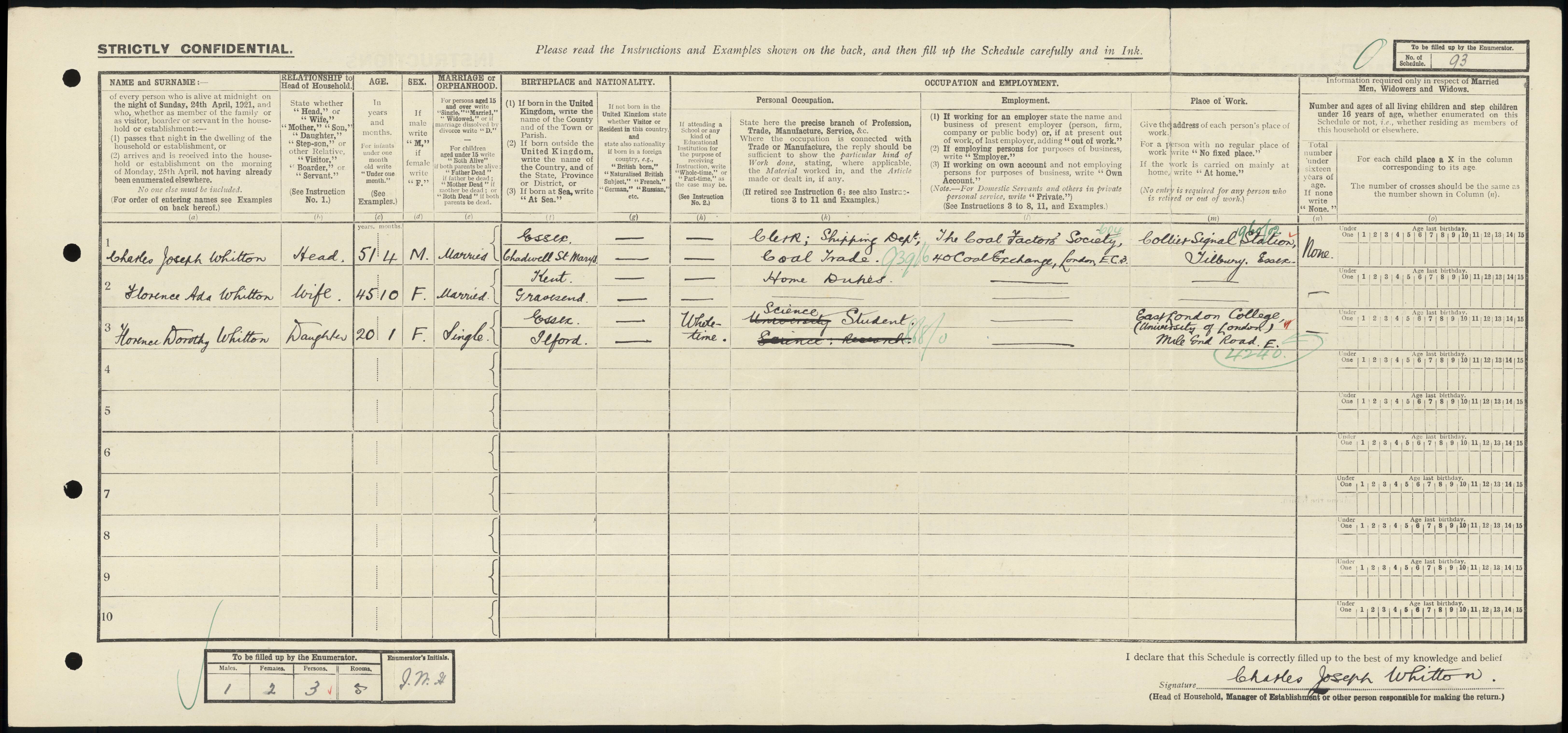 • Lived at: 1 South Park Crescent, 1921, Ilford, Essex, England.