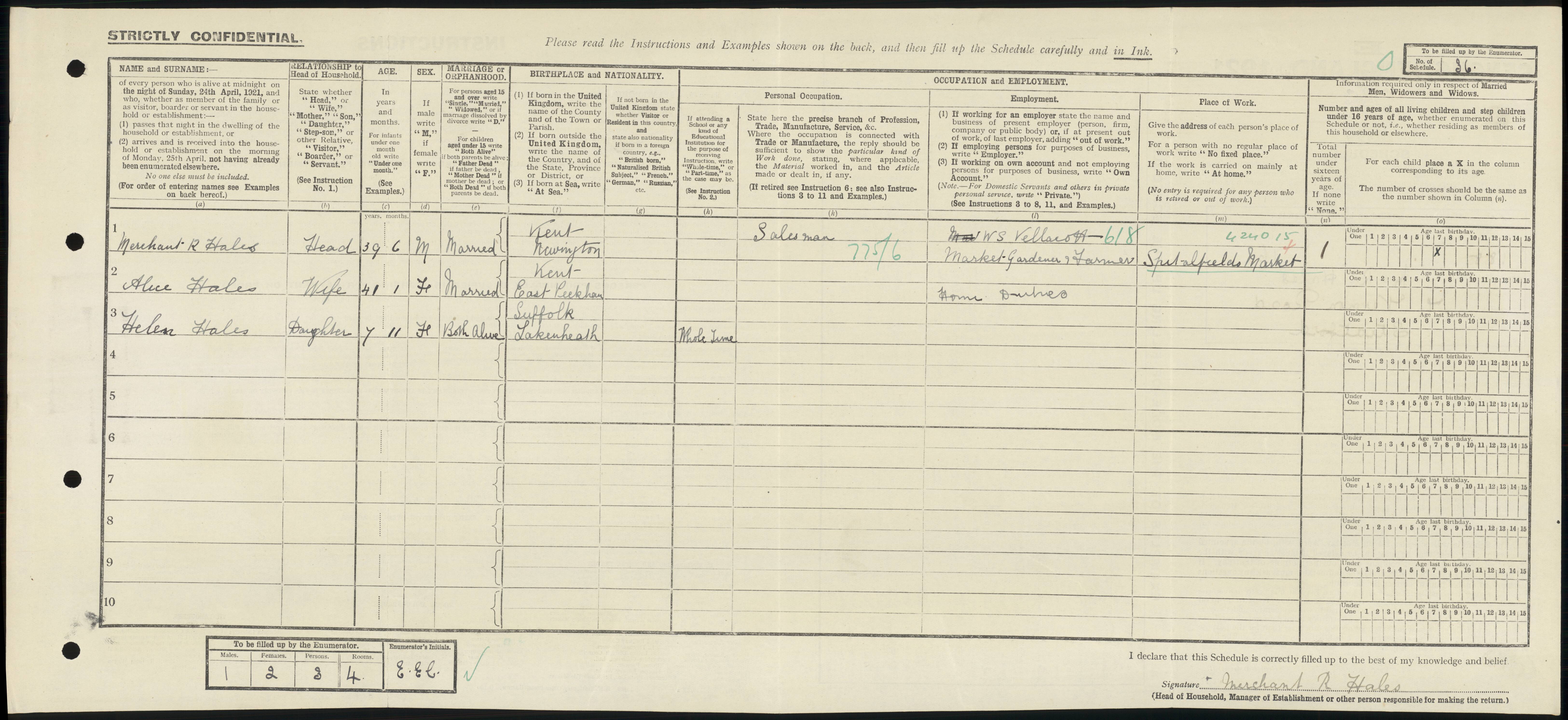 • Occupation: Salesman, 1921, Stratford, West Ham, Essex & London, England. Employer : W S Vellacott Market Gardener & Farmer