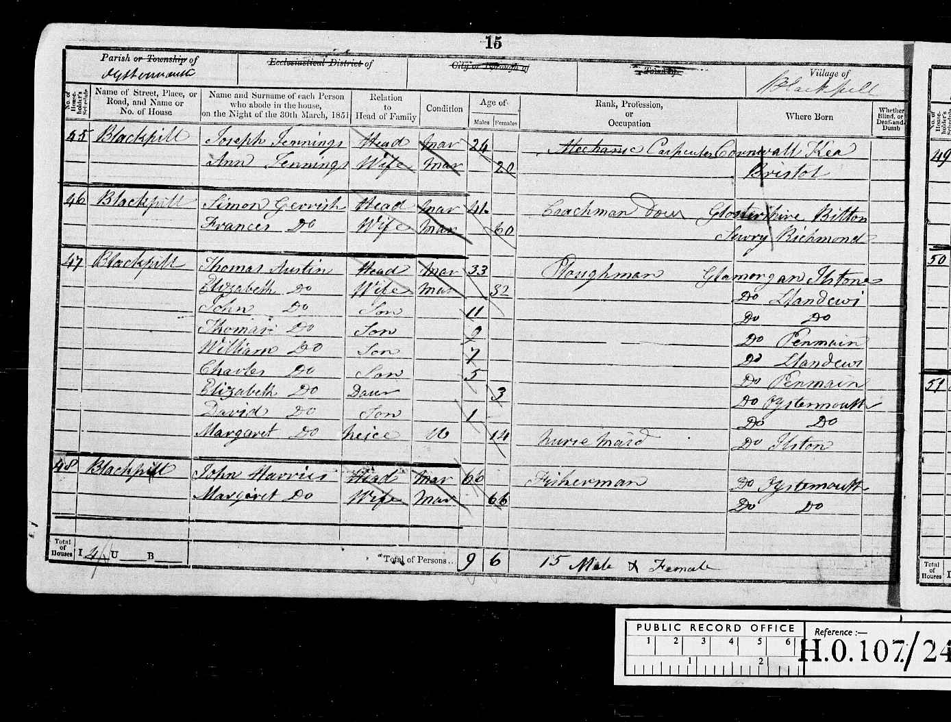 • Lived at: Black Pill, 1841, Oystermouth, Glamorgan, Wales. • Occupation: Gardener, 1841, Black Pill, Glamorgan, Wales.