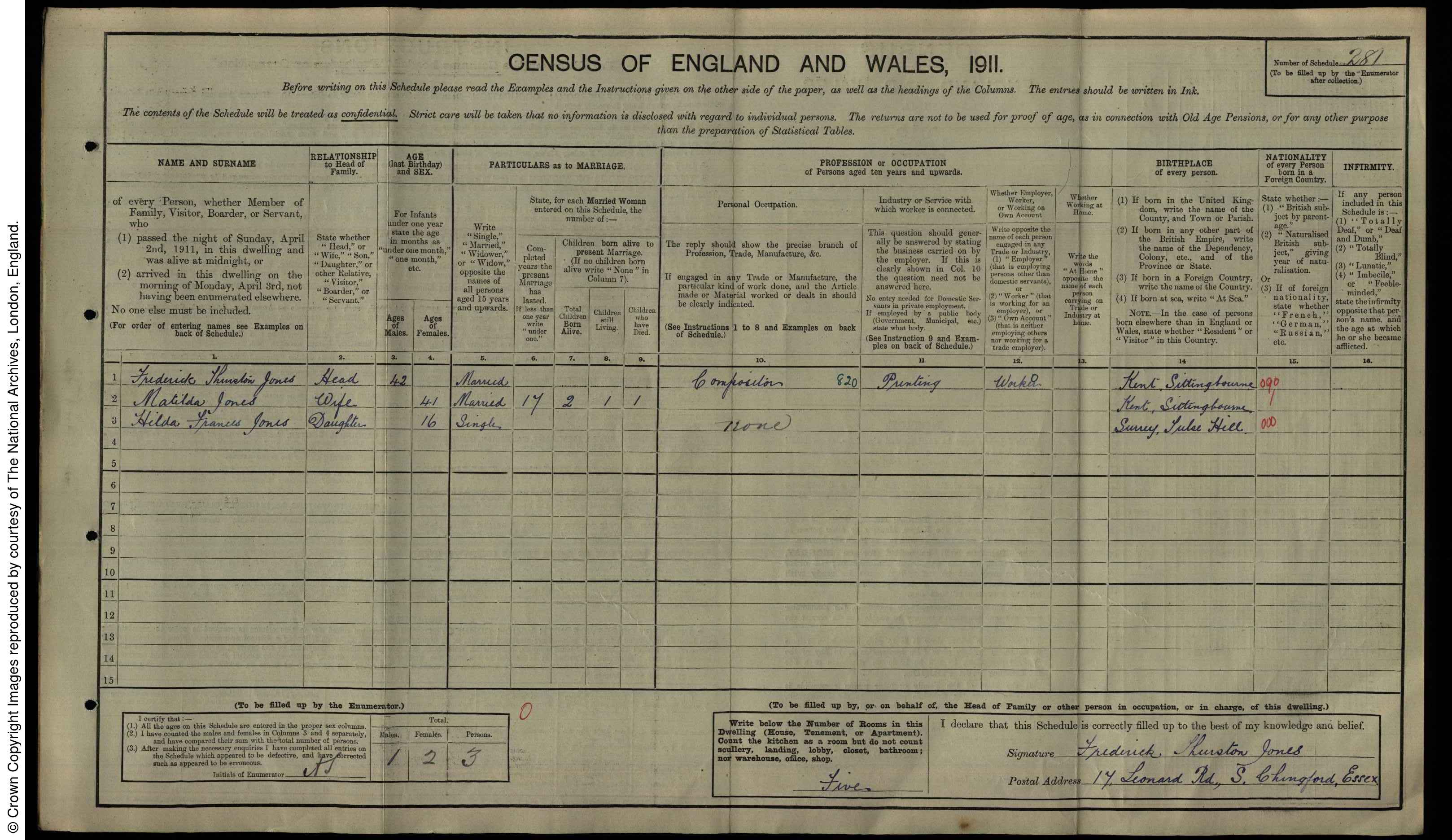 • Lived at: 17 Leonard Road, 1911, Chingford, Essex, England.